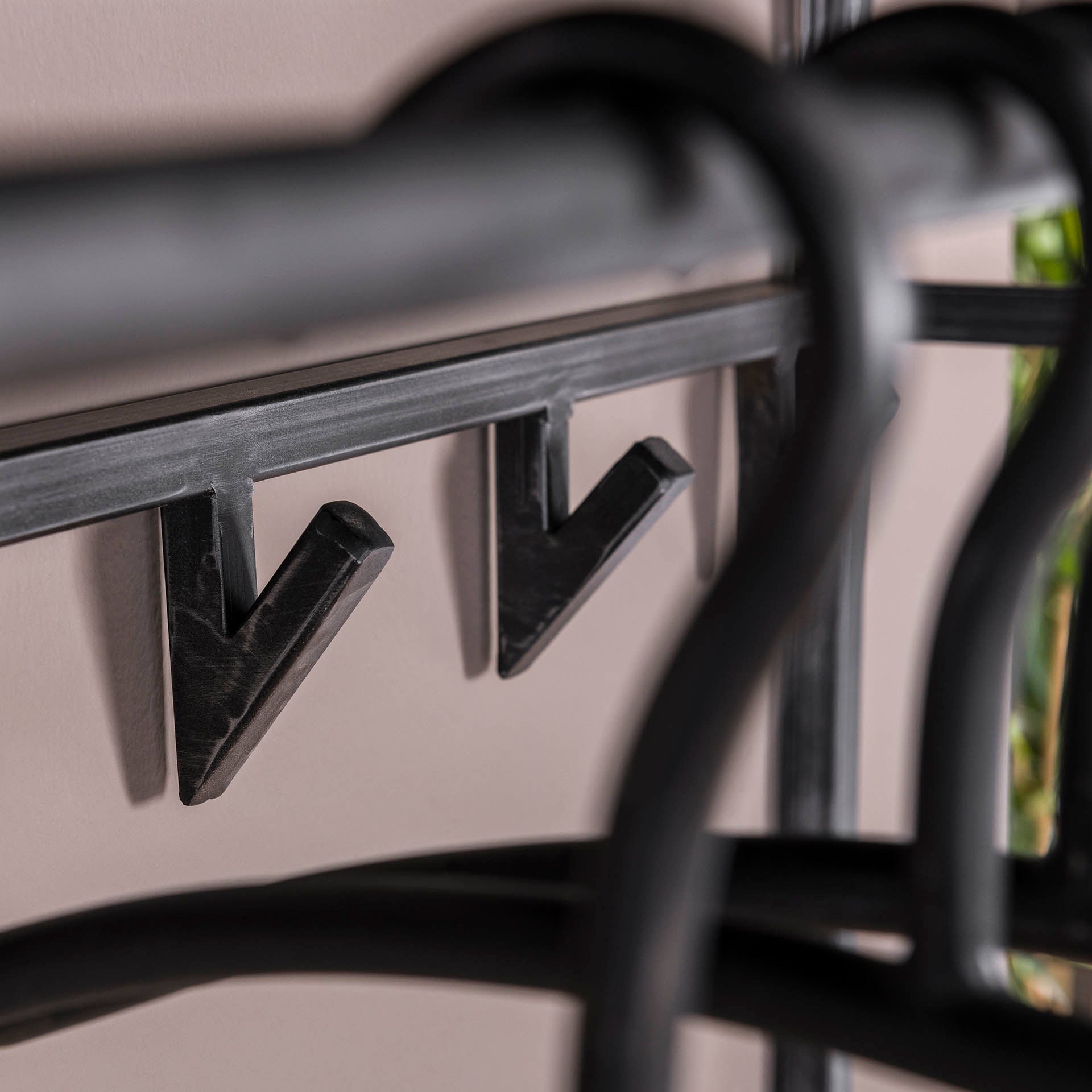 Kapstok "Yucon" heeft een hoedenplank gemaakt van massief acacia hout. zorgvuldig geselecteerd hout. De kapstok is ambachtelijk afgewerkt met een zwarte finish. dit geeft de kapstok een natuurlijke en unieke look aan de wand. Aan de hoedenplank is er een geschuurd is metalen roede bevestigd en er zijn 12 haakjes aanwezig. U kunt uw jassen dus zowel aan de haakjes als een hanger ophangen.