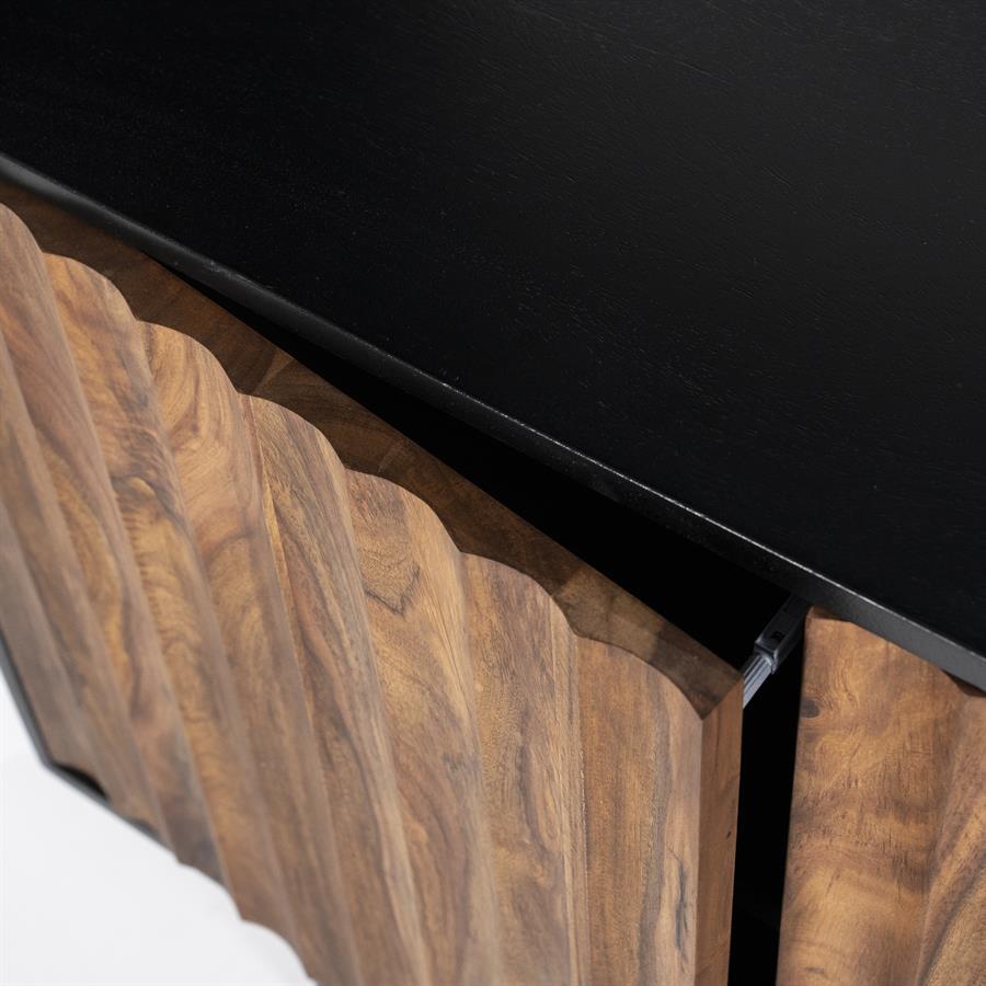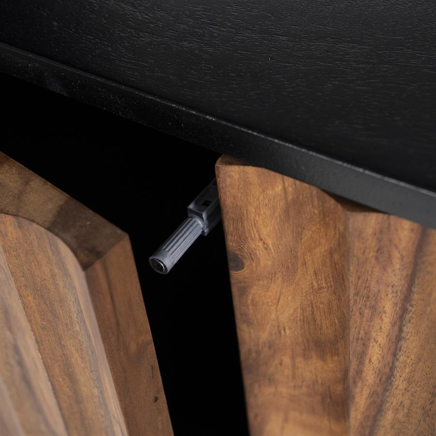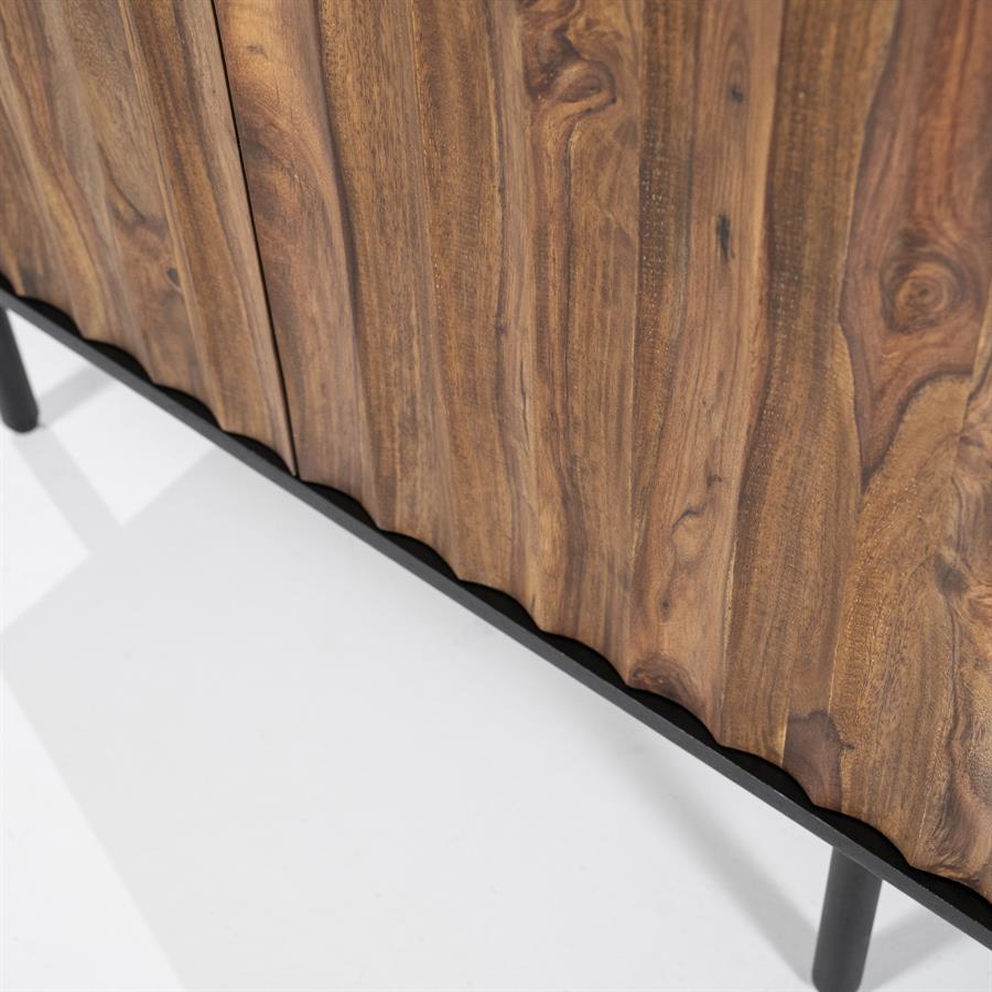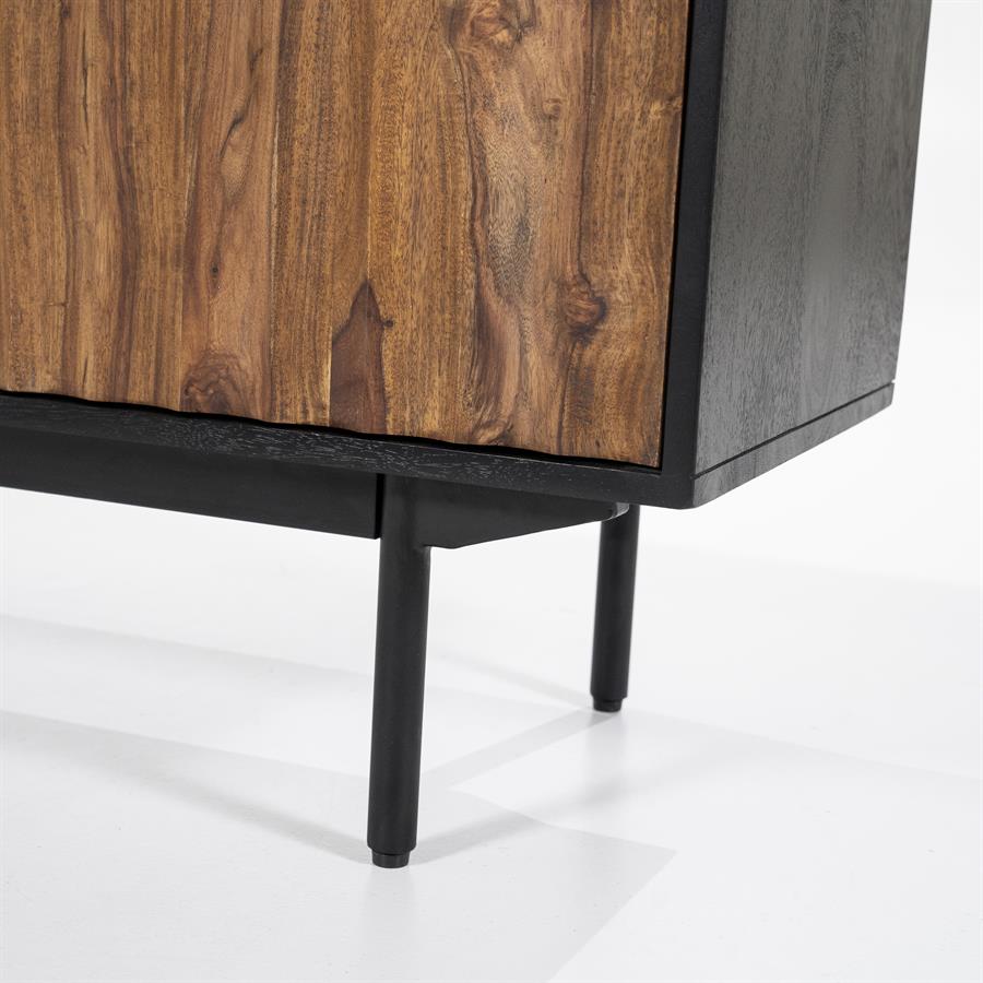 Het robuuste Sheeshamhout geeft de kast niet alleen een rijke, warme uitstraling, maar is ook bekend om zijn duurzaamheid en unieke houtnerf, wat elke kast een eigen karakter geeft. De natuurlijke kleur bruin benadrukt het organische gevoel van het hout, waardoor de kast gemakkelijk te combineren is met diverse stijlen, van modern tot landelijk.