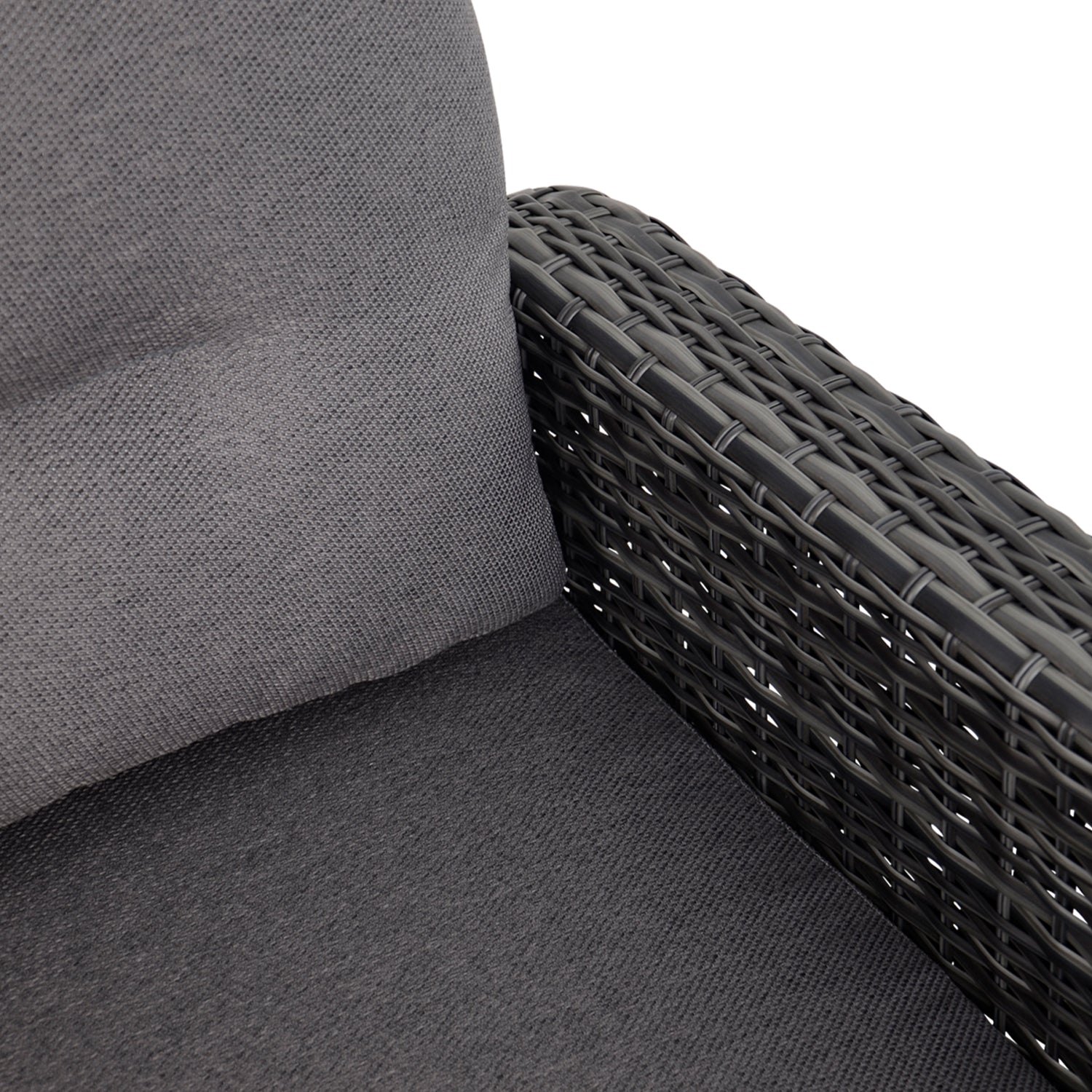 Deze loungebank heeft een stevige aluminium frame in een matte antracietkleur, wat zorgt voor een duurzame en een moderne uitstraling. De zitting en rugleuning maken gebruik van olefin kussens die zorgen voor een prettige en ontspannen zithouding.