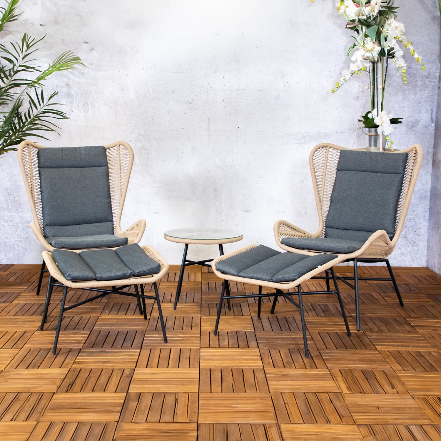 Onze Loungeset is ideaal voor het creëren van een gezellige en uitnodigende zithoek in je tuin en terras. Of als Loungeset op balkon. Of je nu alleen wilt ontspannen of samen met vrienden en familie wilt genieten van de buitenlucht, deze Loungeset 2 personen biedt alles wat je nodig hebt voor een aangename en comfortabele buitenervaring.