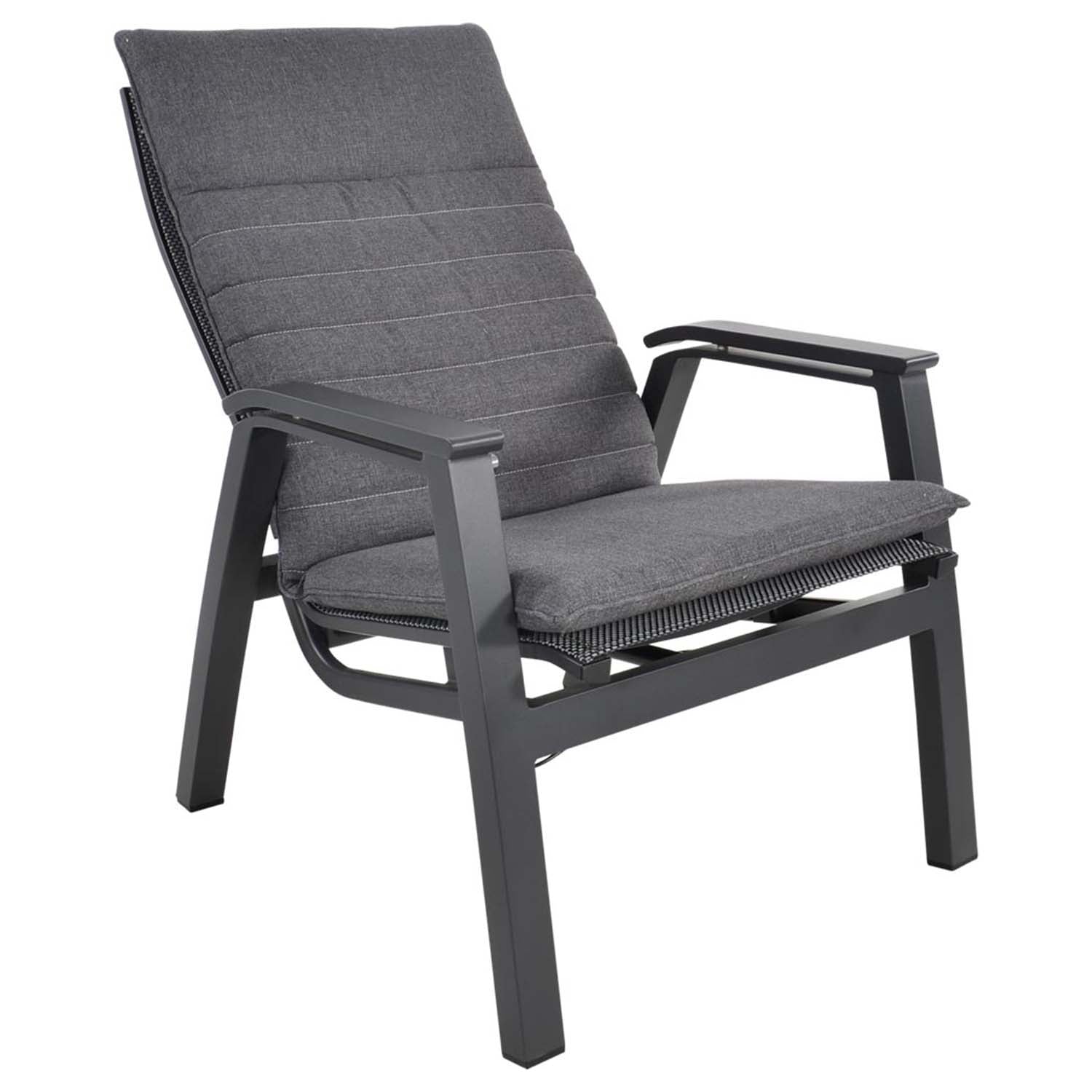 Het mat antracietkleurige, gepoedercoate aluminium frame geeft deze loungestoel een elegante en verfijnde look die moeiteloos past bij diverse tuininrichtingen. Of je nu extra zitplaatsen nodig hebt voor je buitenlounge of een comfortabele plek om van je tuin te genieten, deze loungestoel biedt de perfecte oplossing.