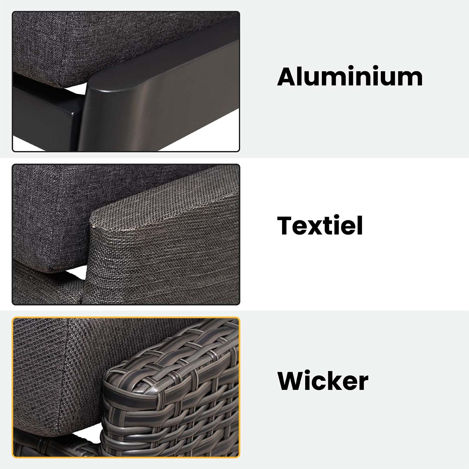 Het Wicker vlechtwerk in grijs-antraciet gecombineerd met een mat antracietkleurig gepoedercoat aluminium frame geeft de stoel een elegante en verfijnde look die moeiteloos past bij diverse tuininrichtingen. Of je nu extra zitplaatsen nodig hebt voor je buitenlounge of een comfortabele plek om van je tuin te genieten, deze loungestoel biedt de perfecte oplossing.
