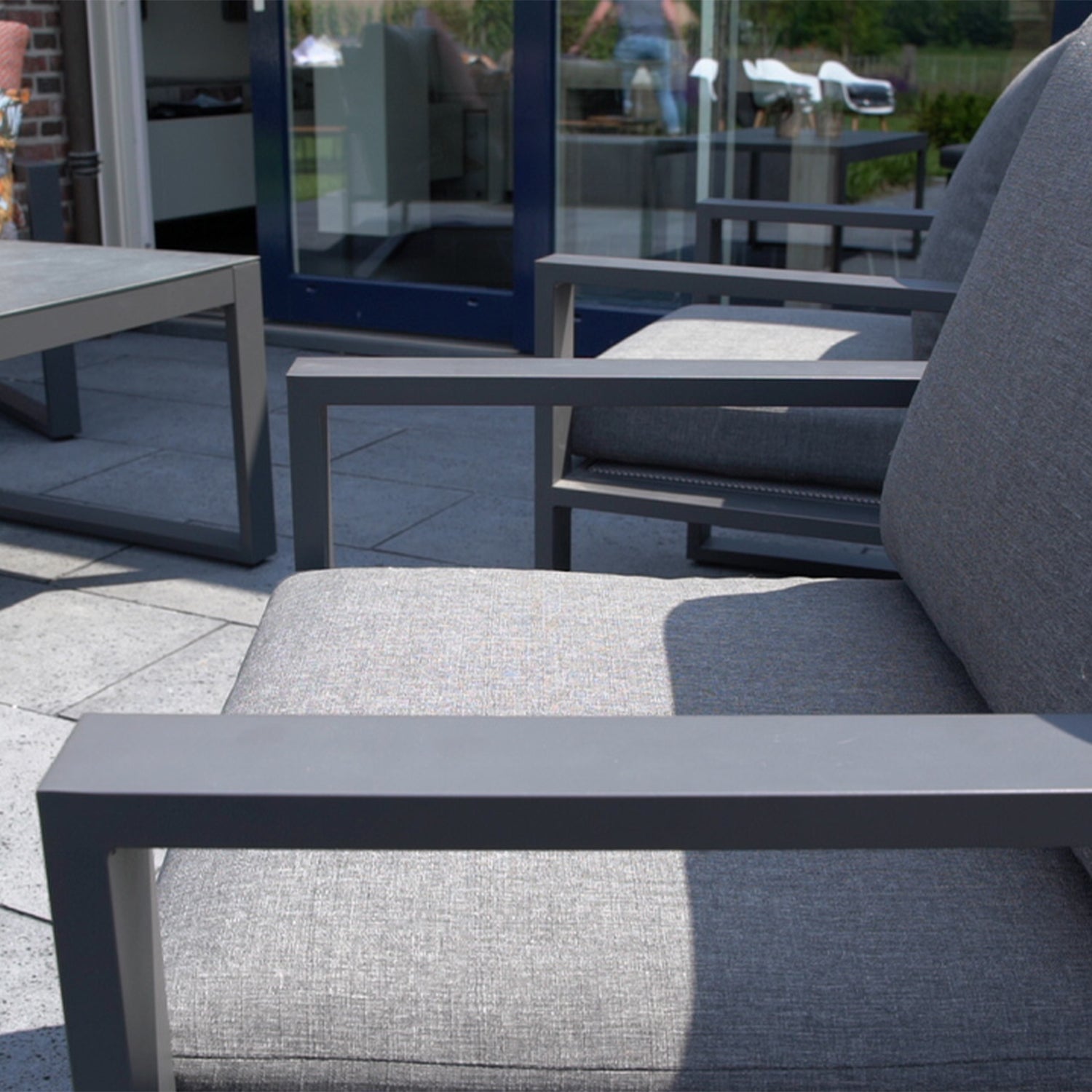 Het mat antracietkleurige aluminium frame geeft deze loungestoel een elegante en verfijnde look die moeiteloos past bij diverse tuininrichtingen. Of je nu extra zitplaatsen nodig hebt voor je buitenlounge of een comfortabele plek om van je tuin te genieten, deze loungestoel biedt de perfecte oplossing.