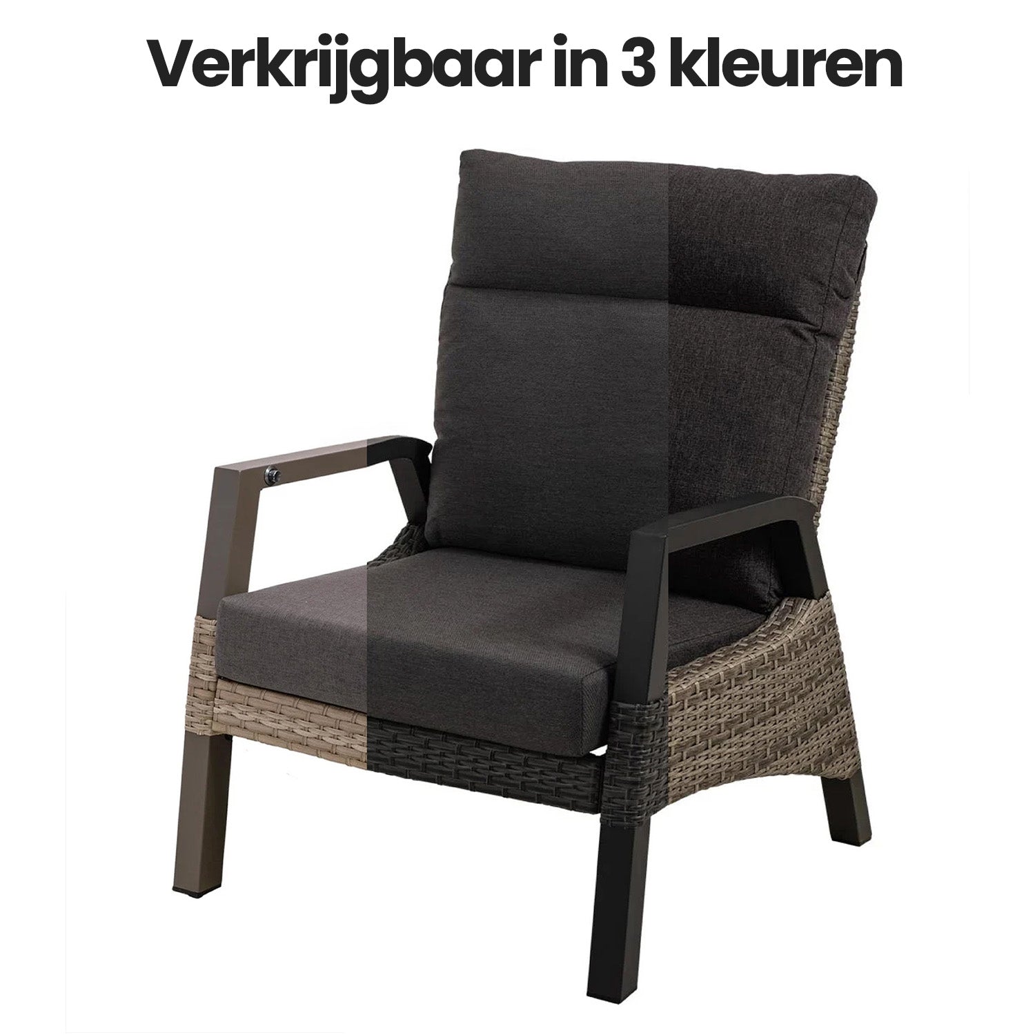 Het aluminium geeft de stoel een elegante en verfijnde look die moeiteloos past bij diverse tuininrichtingen Of je nu extra zitplaatsen nodig hebt voor je buitenbar of een comfortabele plek om van je tuin te genieten, deze loungestoel biedt de perfecte oplossing