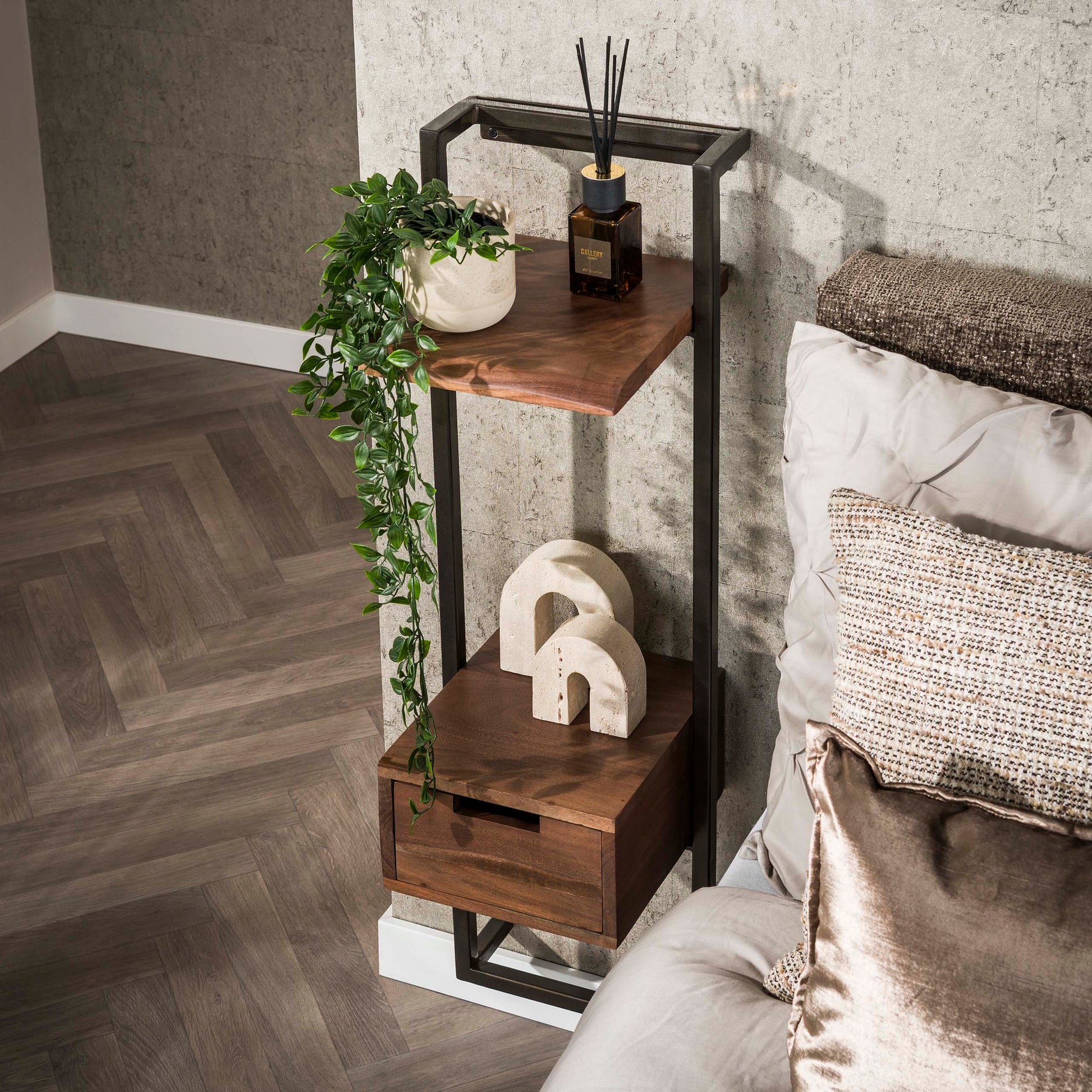 De compacte lade biedt praktische opbergruimte voor alledaagse essentials, terwijl het open onderste vak ruimte geeft voor boeken, tijdschriften of decoratieve items. Dankzij het organisch design met afgeronde hoeken en de natuurlijke afwerking past Kiro moeiteloos in een Scandinavisch interieur, Japandi slaapkamer of modern rustiek concept. Het kastje combineert prachtig met lichte stoffen, natuursteen en warme houtaccenten, en vormt daarmee een stijlvolle basis naast elk bed.