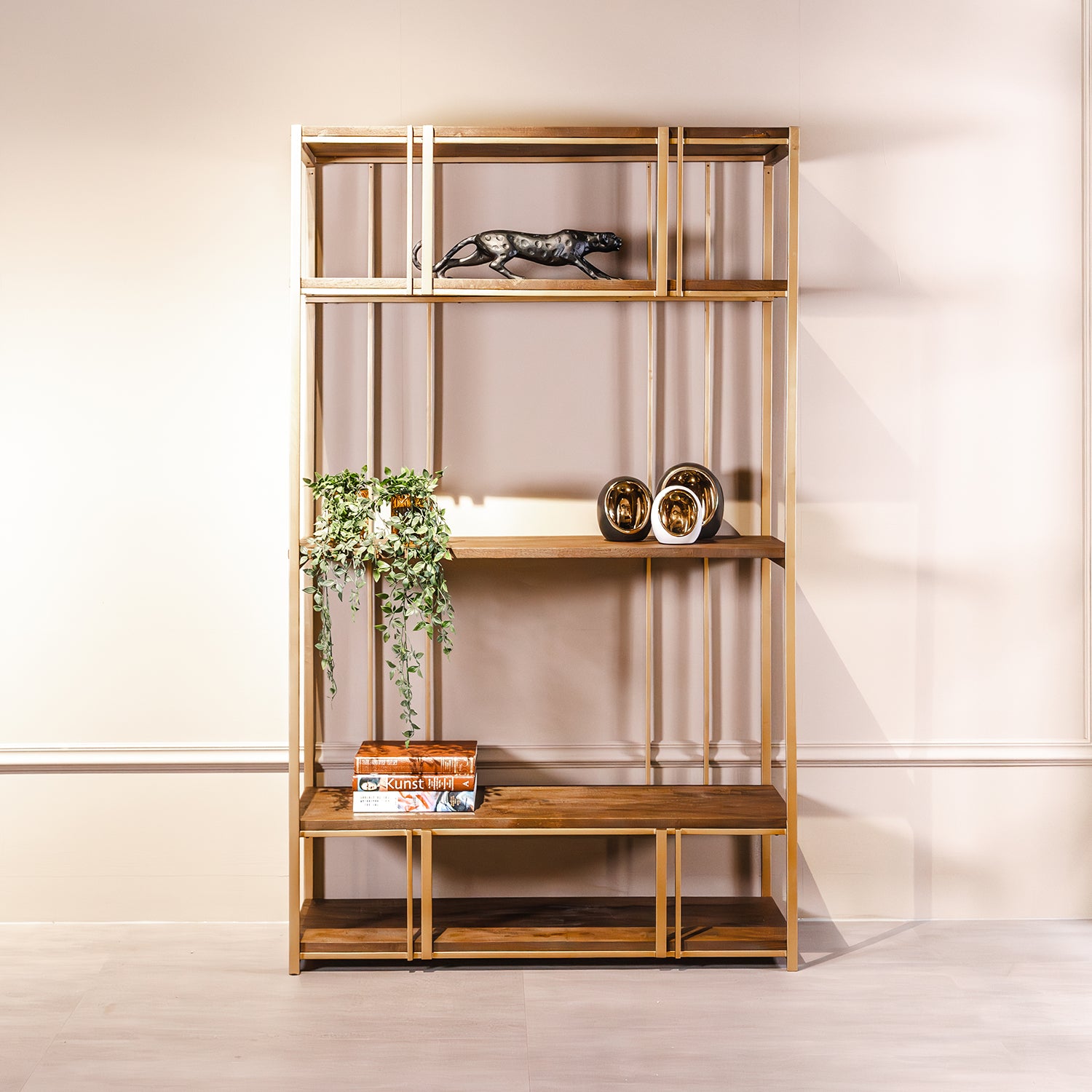 De Wandkast Belvedere, gemaakt van massief mangohout in een warme bruine kleur, straalt gezelligheid uit. Met bronzen kleurige grepen voegt deze kast niet alleen stijl, maar ook functionaliteit toe aan je ruimte. De open structuur maakt het eenvoudig om jouw favoriete items tentoon te stellen.