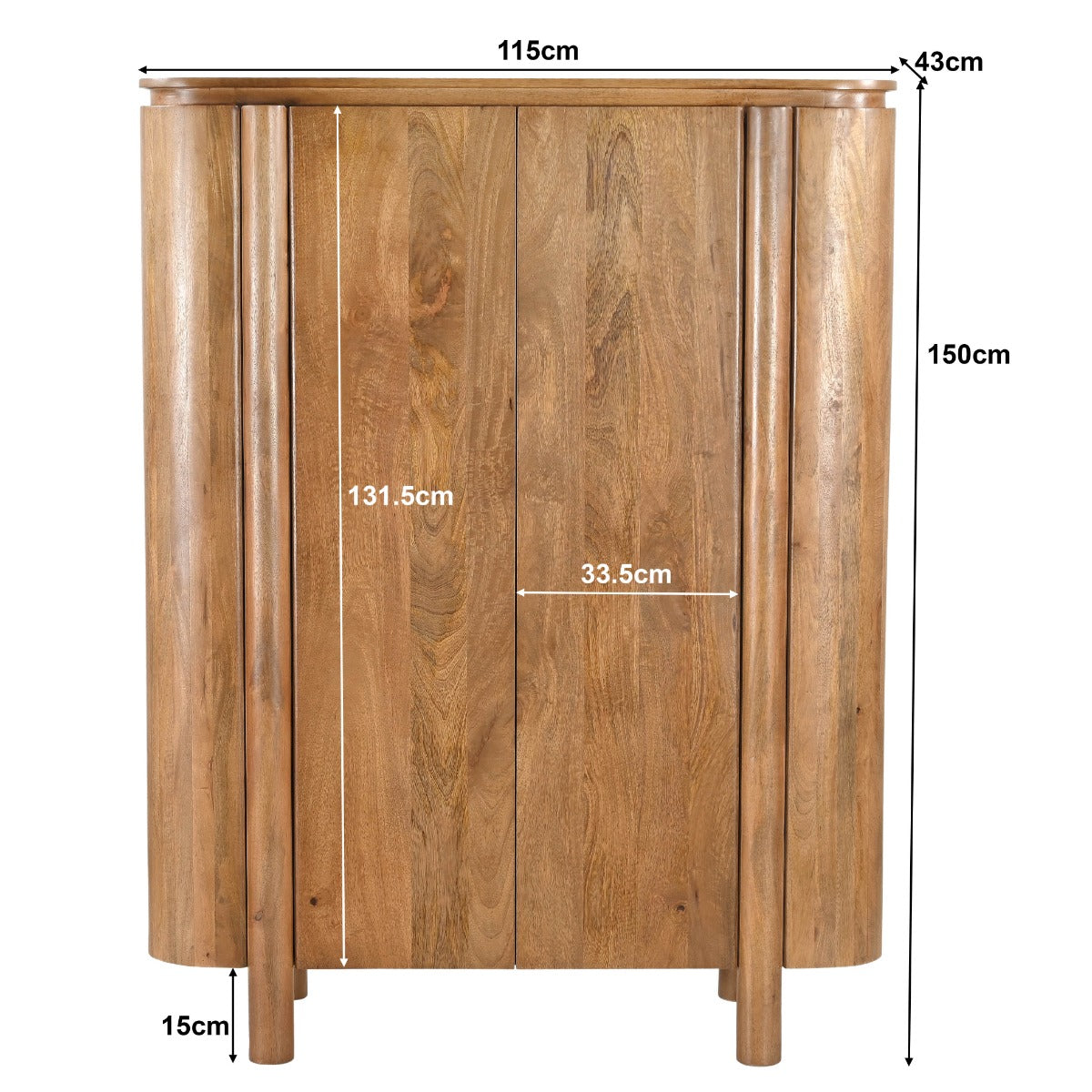 Afmetingen: 115x43x150 cm – ideaal als opbergkast of vitrinekast
