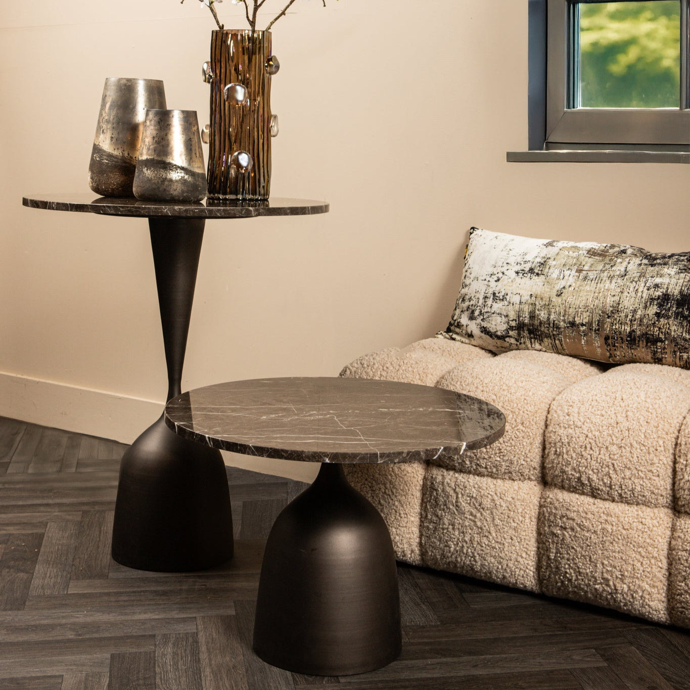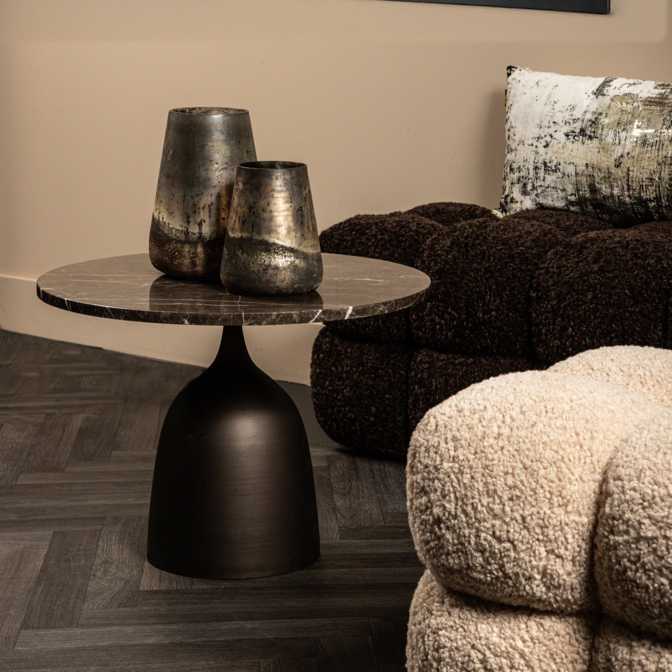 De PTMD Patras salontafel of bartafel bruin marmer zijn een toonbeeld van ingetogen luxe en tijdloos design. Met zijn ronde bruine marmeren blad en minimalistisch metalen onderstel voegt deze tafel moeiteloos een vleugje elegantie toe aan zowel moderne als klassieke interieurs. Het unieke aderpatroon van het marmer maakt elke tafel een exclusief stuk.