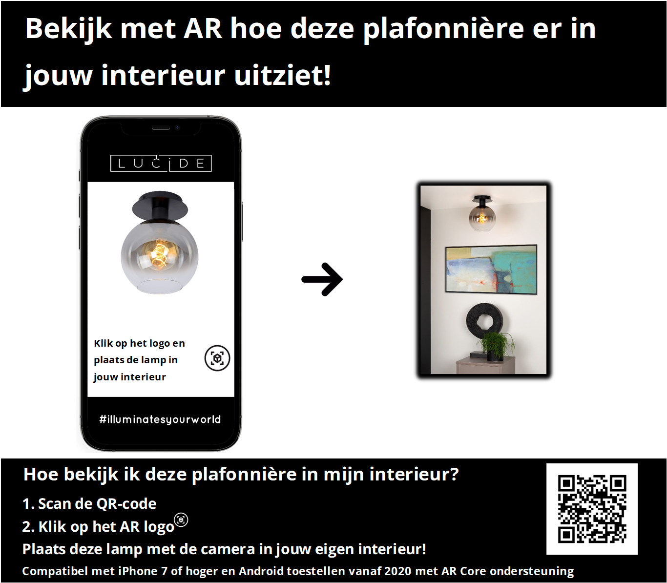 Al onze lampen worden exclusief lichtbron verkocht. Deze lamp maakt gebruik van een E27 fitting. Deze lamp kan maximaal een lichtbron van 60 watt aan. Er wordt aanbevolen een Filament Lamp van Ø9,5 cm te gebruiken.