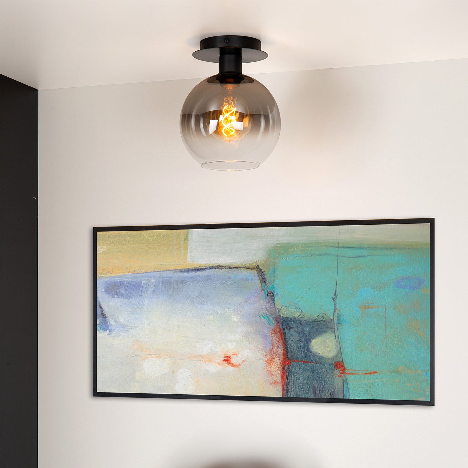 Maak kennis met de Plafonnière Marius in de kleur Mat Zwart. Creëer de perfecte sfeer in je huis met de prachtige plafondlamp. Deze Het ontwerp van deze lamp doet denken aan een omgekeerd cognacglas, vervaardigd uit fumé glas. De opengewerkte onderkant maakt de zichtbare lichtbron goed zichtbaar, wat bijdraagt aan een sfeervol lichteffect.