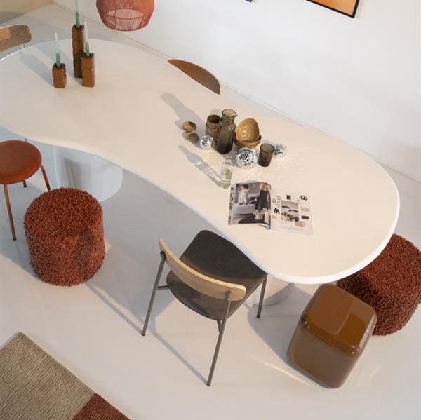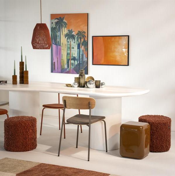 - Design: De grof geweven bouclé stof in terracotta geeft de poef een moderne en warme uitstraling, ideaal voor zowel minimalistische als gezellige interieurs.