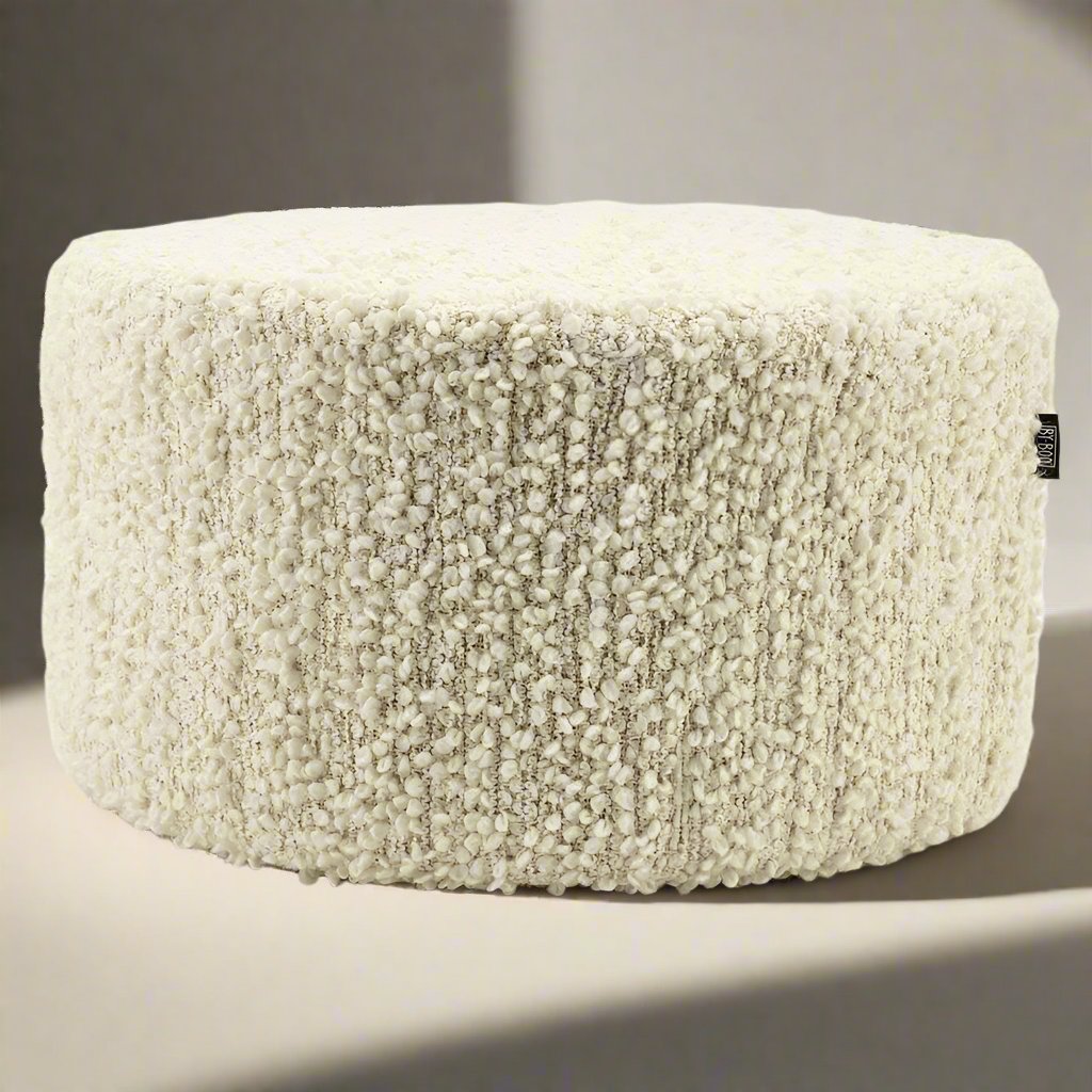 - Design: De grof geweven bouclé stof in wit geeft de poef een moderne en warme uitstraling, ideaal voor zowel minimalistische als gezellige interieurs.