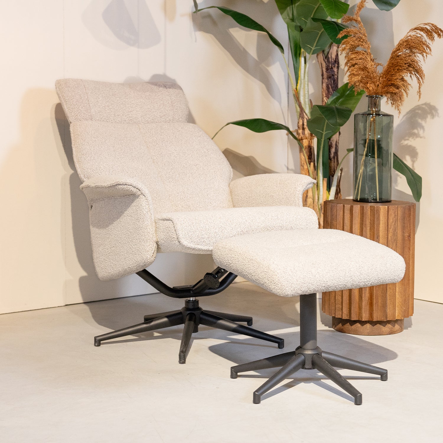 Maak kennis met de Relaxfauteuil Verdal in Naturel Boulcé. Deze Fauteuil is verkrijgbaar met en zonder hocker.