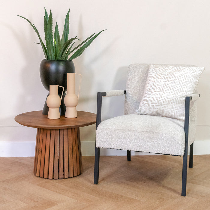 De Salontafel Burundi is een zeer mooie en unieke salontafel gemaakt van Acaciahout. De onderkant is gemaakt van houten latten wat het een erg unieke look geeft. Het blad is gemaakt van verschillende houten planken waardoor elke salontafel uniek is. De ronde salontafel is beschikbaar in de maten: 60x60x45 cm en 90x90x40 cm. Daarnaast is de tafel ook verkrijgbaar in het zwart.