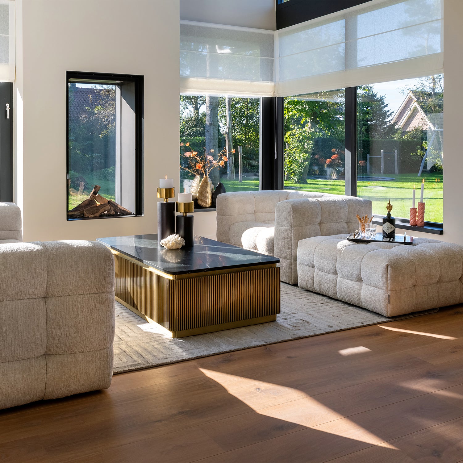 Op de sfeerfoto is de Salontafel Ironvolle | Vierkant te zien. Deze sfeerfoto is ter indicatie toegevoegd. Let op! Dit is dezelfde salontafel, maar dan de vierkante versie!