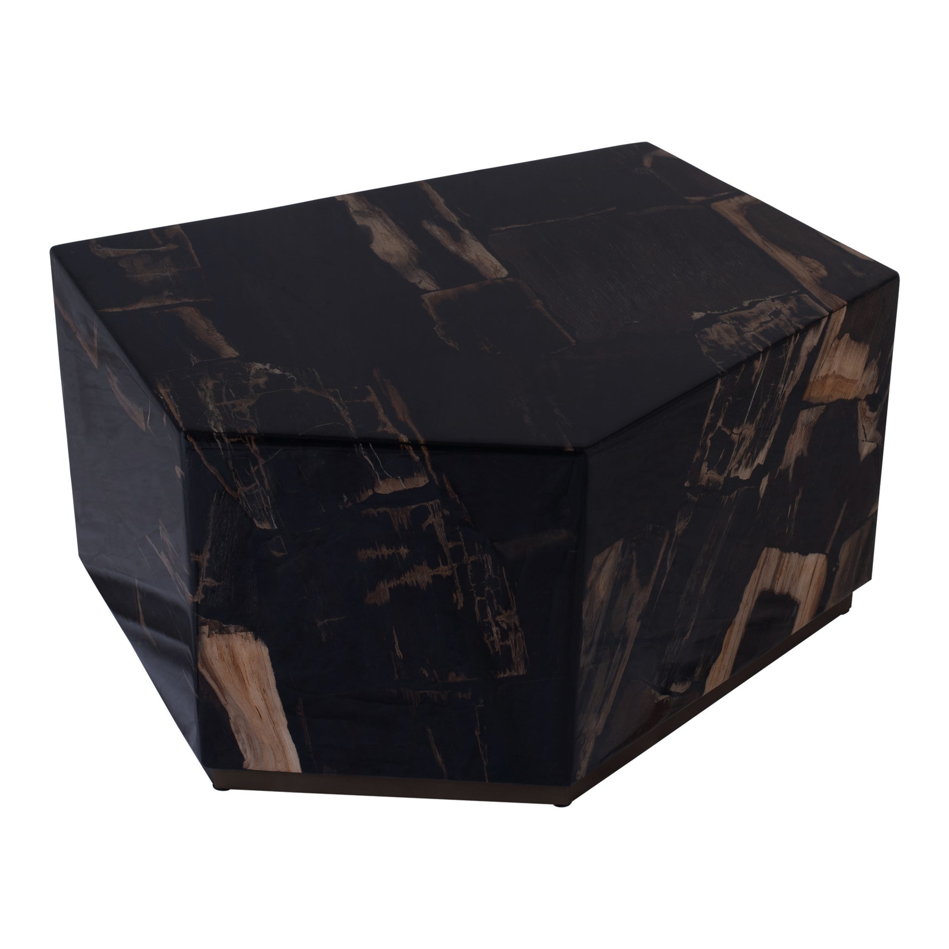 Maak kennis met de Salontafel Rayn in Zwart Versteend Hout. De salontafelset bestaat uit drie bijzettafels die een opvallende en unieke toevoeging zijn aan je woonkamer. Dit product betreft alleen de rechter tafel op de foto! De tafels hebben een gemêleerd zwart met bruin/crème kleurenschema en zijn voorzien van een glanzende afwerking dankzij de polyesterhars topcoat. Deze salontafel brengen een luxe en natuurlijke uitstraling in je interieur.