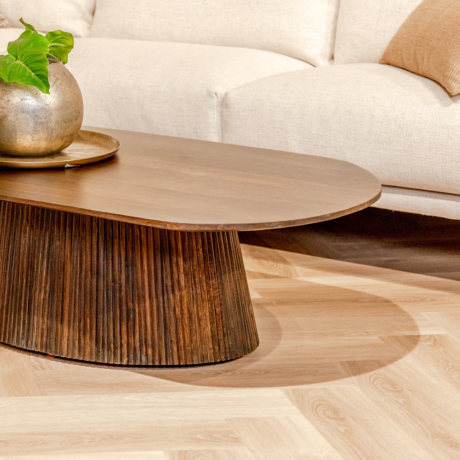 Ontdek de betoverende Salvator Walnut salontafel: een harmonieuze mix van verfijning en warmte voor elk interieur. Met een diepe, elegante donkere kleur ademt deze tafel de tijdloze charme van natuurlijk Mangohout uit. Het strakke ontwerp met een perfect afgewerkte onderkant straalt duurzaamheid en klasse uit, waardoor het een visueel genot is en langdurige functionaliteit biedt.