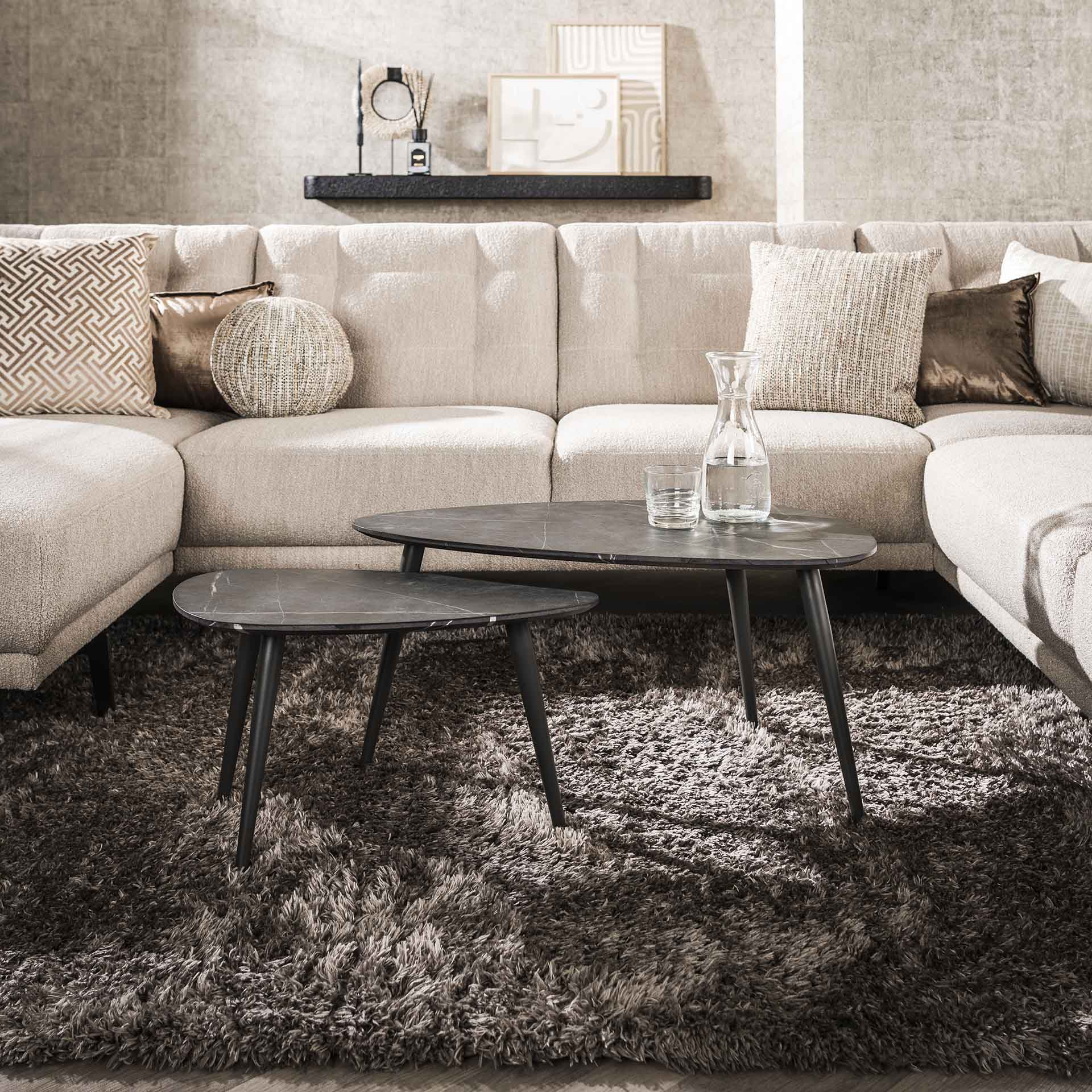 Salontafel Set Rogers | Peervorm | Zwart Melamine
