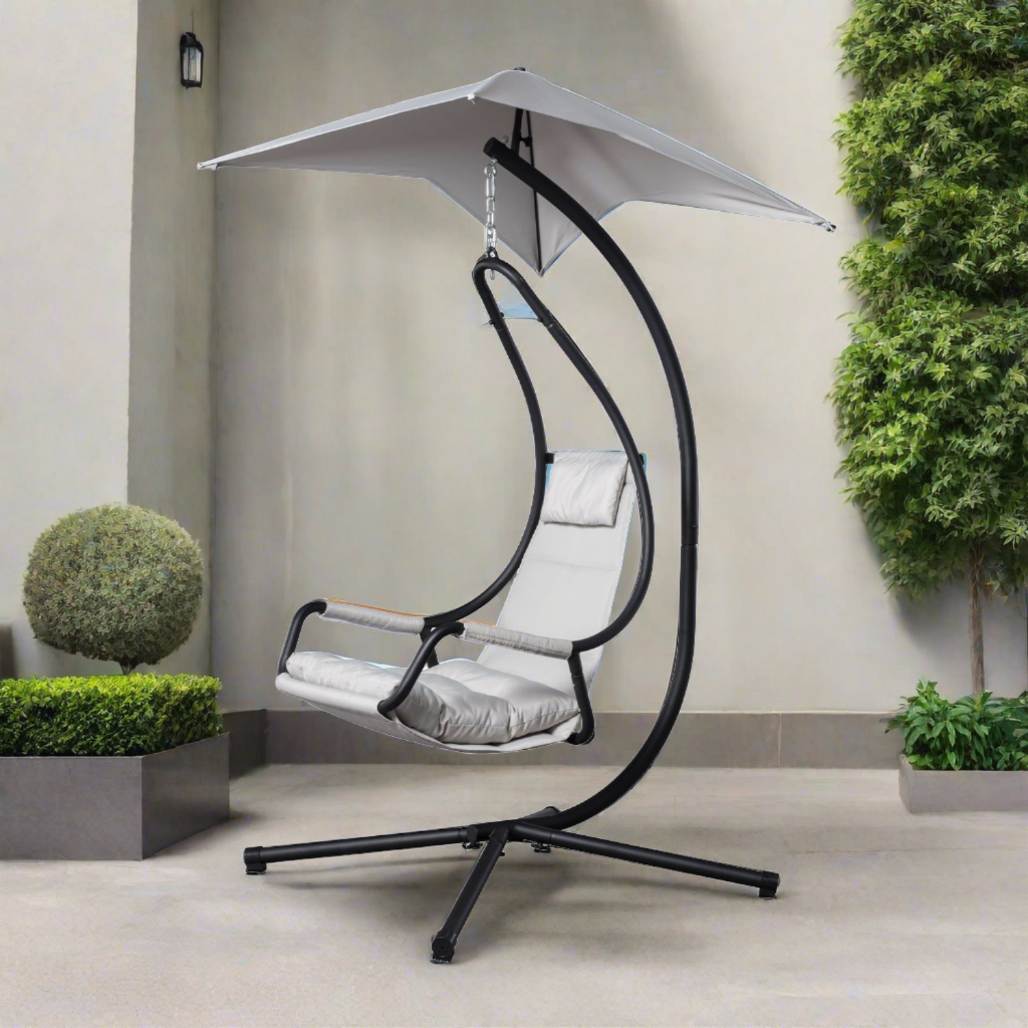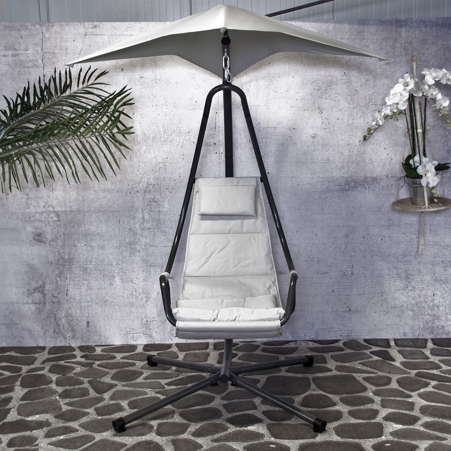 De neutrale grijze kleur geeft een tijdloze uitstraling die moeiteloos past bij verschillende tuinontwerpen en decoratiestijlen, terwijl het duurzame materiaal zorgt voor langdurig plezier in de buitenlucht.