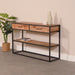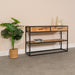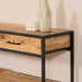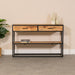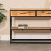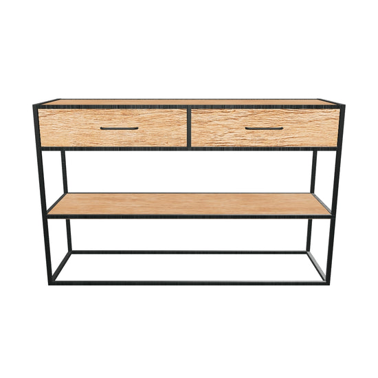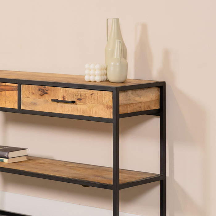 Deze industriële sidetable heeft een hoogte van 76 , een breedte van 35 en een lengte van 120 . De afstand tussen de plank en de lades is 27 .