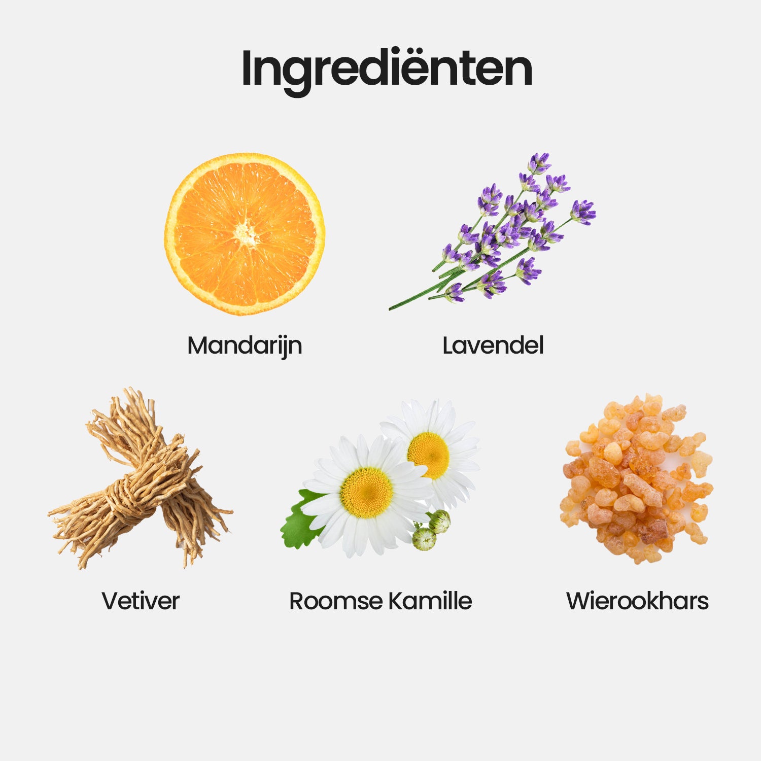 Geniet van een heerlijke nachtrust met onze Sleep Diffuser Blend. Deze blend helpt je gemakkelijker in slaap te vallen en dieper te slapen. Hierdoor word je minder vaak wakker en sta je de volgende dag frisser en met meer energie en focus op.