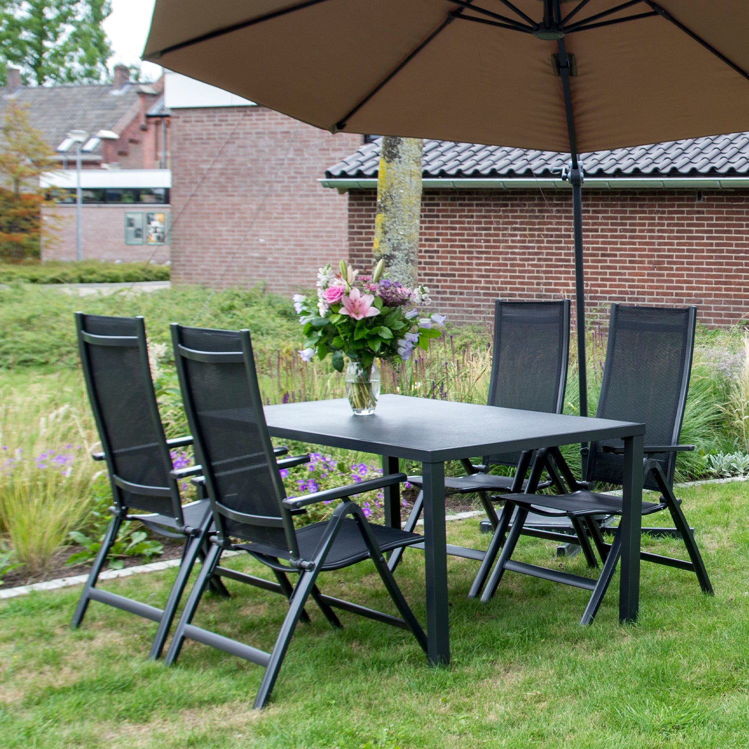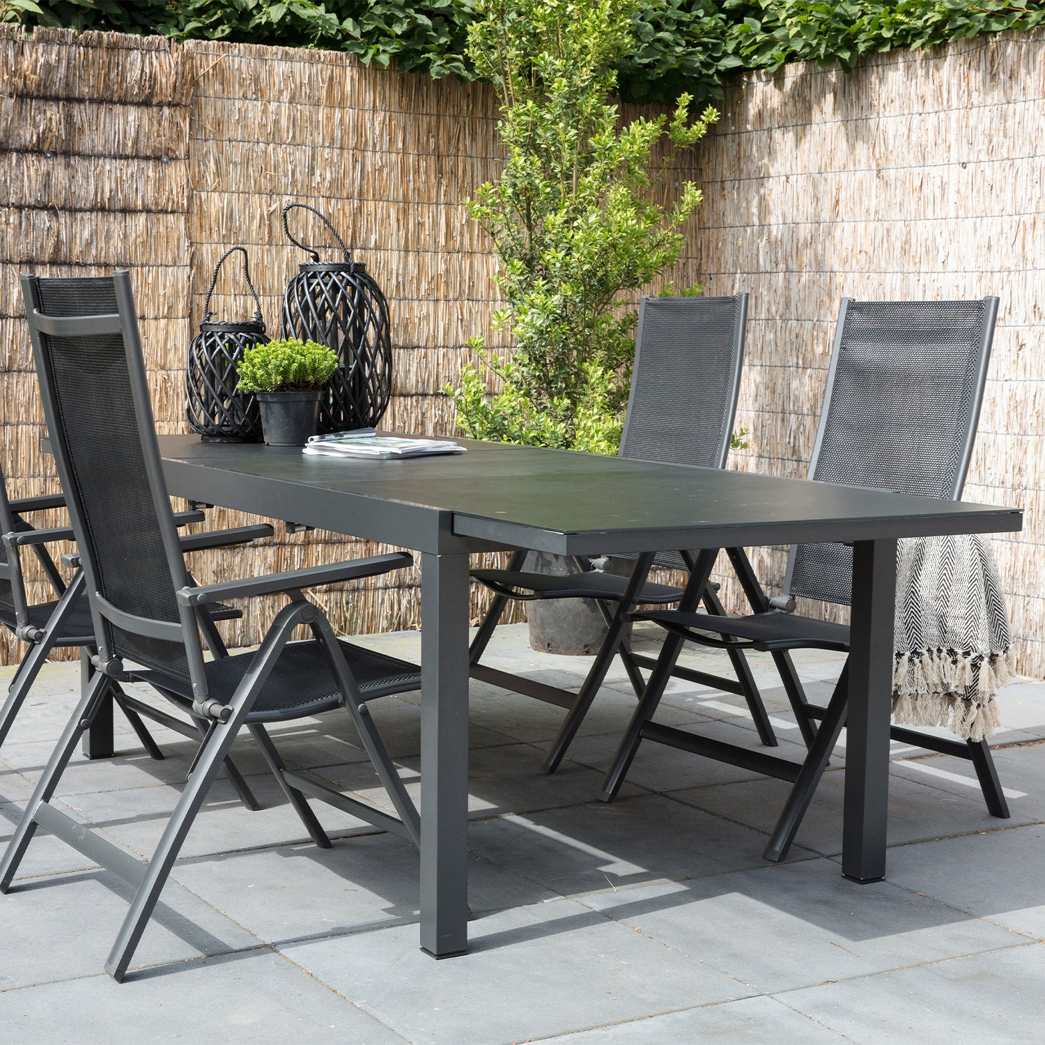 Als je op zoek bent naar een stijlvolle toevoeging aan je tuin, dan is Standenstoel Carino de perfecte keuze. Met zijn moderne design en strakke lijnen voegt hij een eigentijdse uitstraling toe aan elke buitenruimte. Het matte antracietkleurige aluminium geeft deze tuinstoel een elegante en verfijnde look die moeiteloos past bij diverse tuininrichtingen.