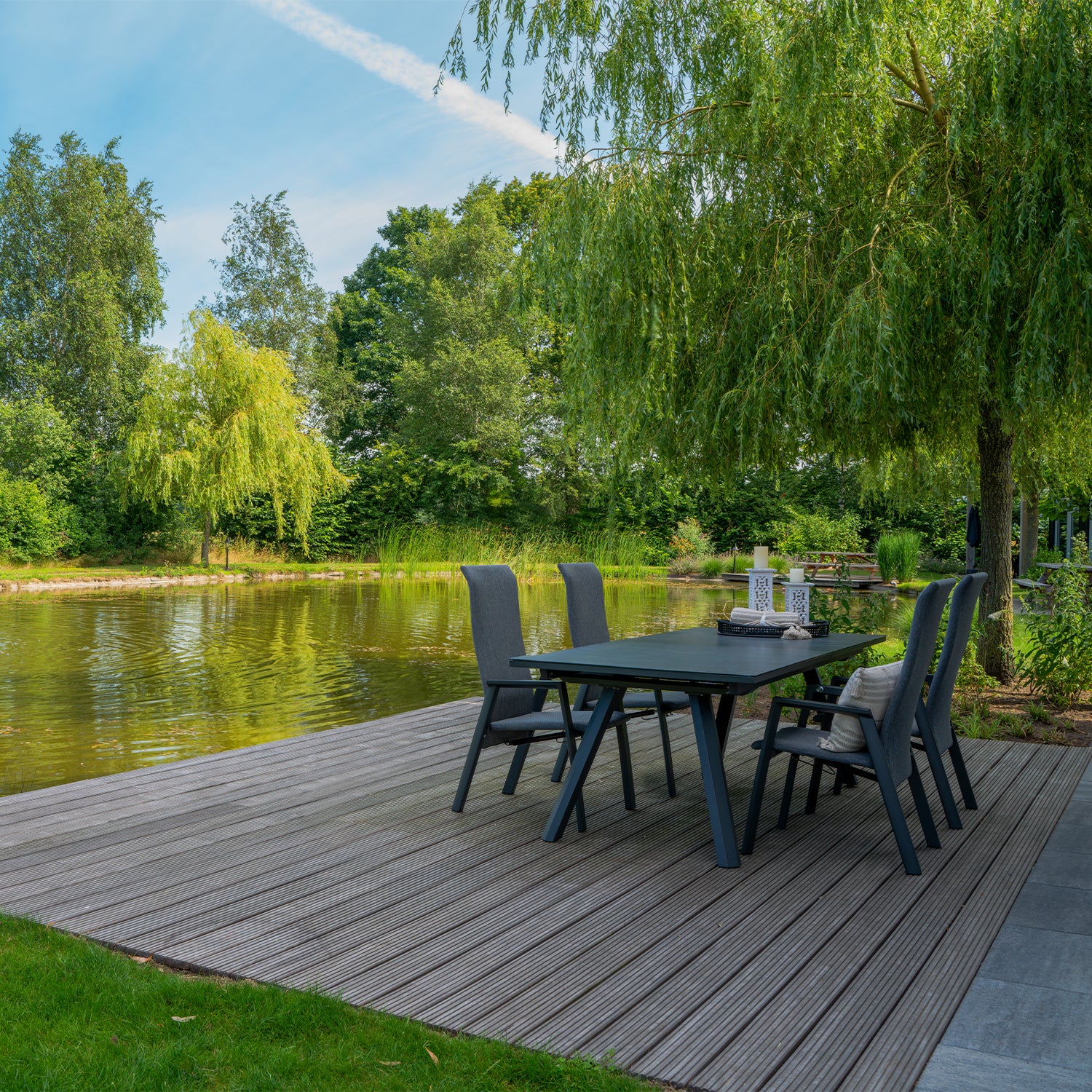 Als je op zoek bent naar een stijlvolle toevoeging aan je tuin, dan is Standenstoel Flare Negro de perfecte keuze. Met zijn moderne design en strakke lijnen voegt hij een eigentijdse uitstraling toe aan elke buitenruimte. Het matte antracietkleurige aluminium geeft deze tuinstoel een elegante en verfijnde look die moeiteloos past bij diverse tuininrichtingen.