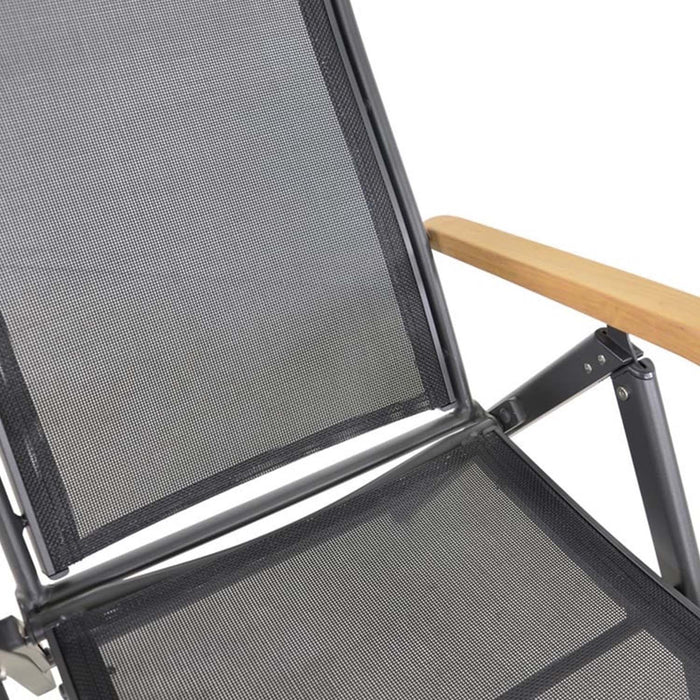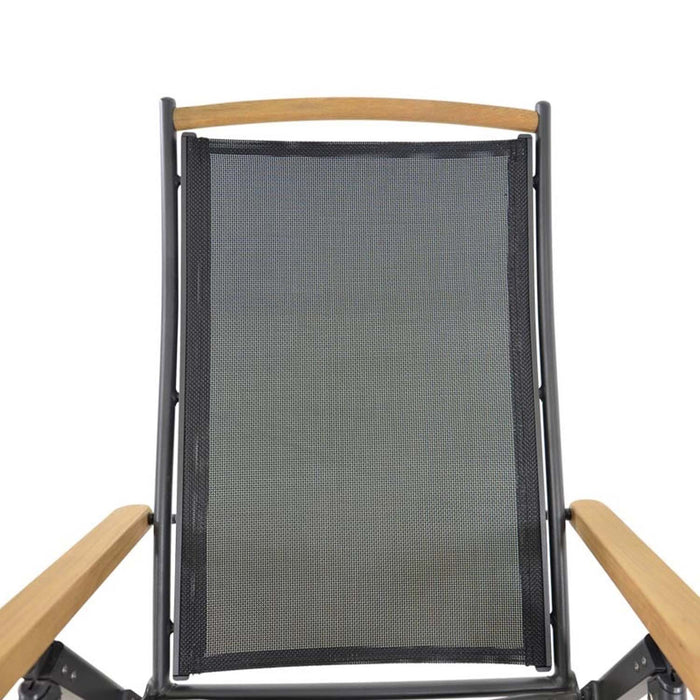 Dit tuinmeubel is voorzien van een hoogwaardig textiel zitting en teak houten accenten, wat zorgt voor extra comfort en duurzaamheid. De afmetingen van 70x58x101 cm en 61x75x110 cm maken hem ruim en comfortabel, ideaal voor langdurig gebruik. Het aluminium materiaal is bestand tegen slijtage en corrosie, waardoor de stoel langdurig zijn kwaliteit behoudt.