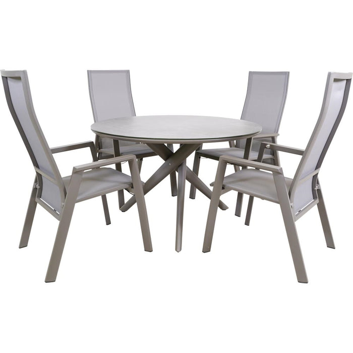 Ontdek de ronde Tuintafel Mojito van MeubelBaas, een stijlvolle en moderne toevoeging aan jouw buitenruimte. Deze tuintafel is gemaakt van hoogwaardig beige aluminium en heeft een prachtig tafelblad van keramisch glas. Het strakke en eigentijdse design maakt de Tuintafel Mojito perfect voor elke tuin of terras.