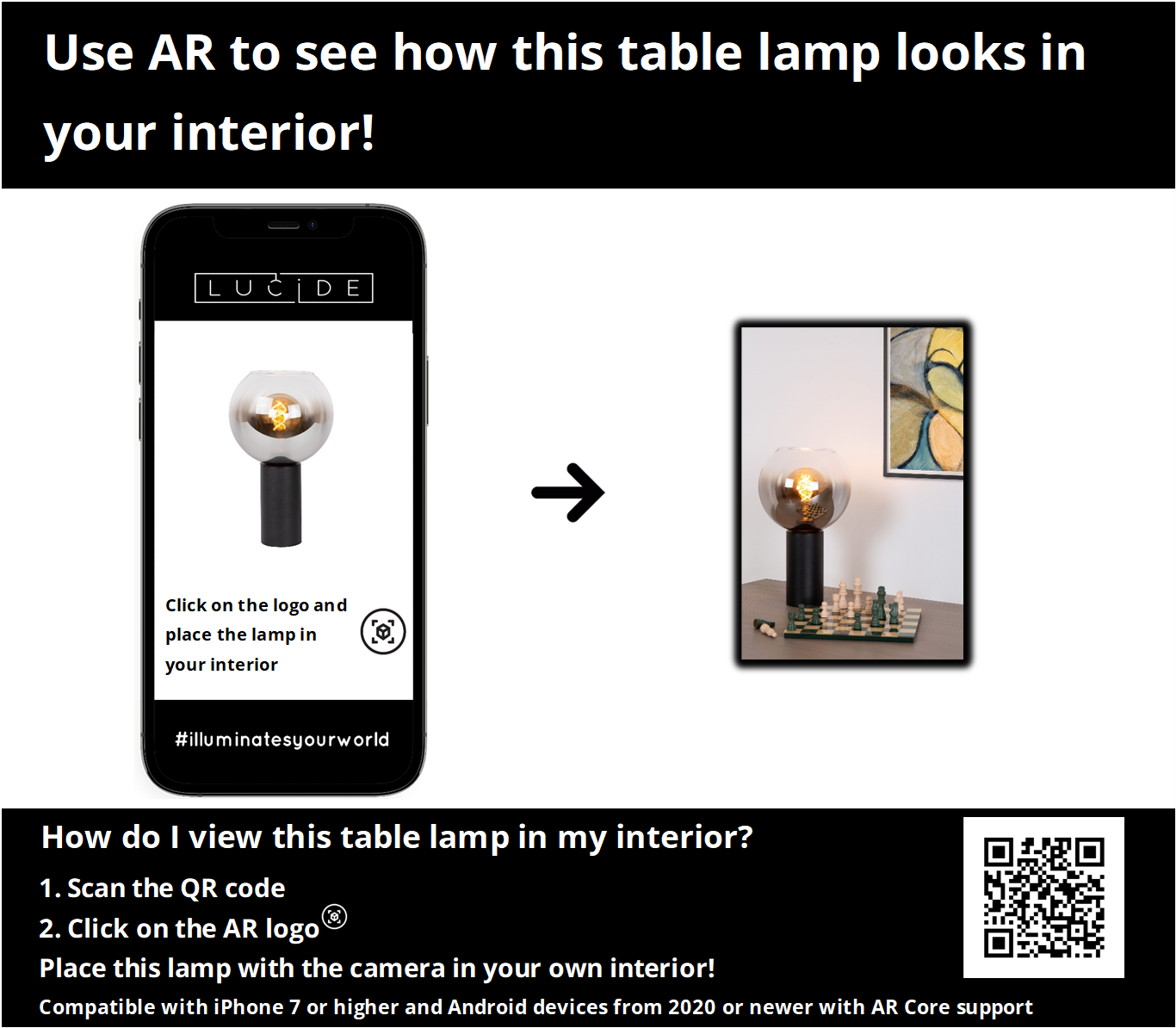 Al onze lampen worden exclusief lichtbron verkocht. Deze lamp maakt gebruik van een E27 fitting. Deze lamp kan maximaal een lichtbron van 40 watt aan. Er wordt aanbevolen een Filament Lamp van Ø9,5 cm te gebruiken.