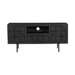 Tv meubel Brandy Black variant met van 120cm, 150cm & 180cm hebben twee deuren, een lade en een open vak, waardoor er ruimte is voor al je favoriete spullen. Het ingesneden blokken patroon geeft een unieke uitstraling. Het meubel combineert de robuustheid van industriële materialen, met de warmte van de natuurlijke houtsoort van mangohout.