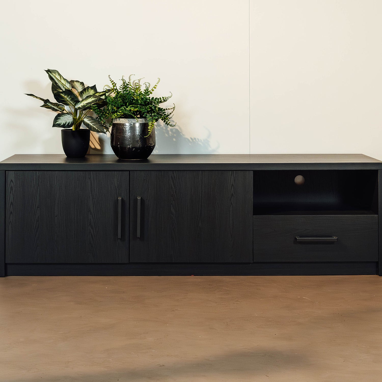 Het Melamine materiaal geeft het meubel een elegante en verfijnde look die moeiteloos past bij diverse interieurstijlen. Of je nu extra opbergruimte nodig hebt voor je mediatoestellen of een decoratief meubelstuk zoekt om je televisie op te plaatsen, dit TV-meubel biedt de perfecte oplossing.