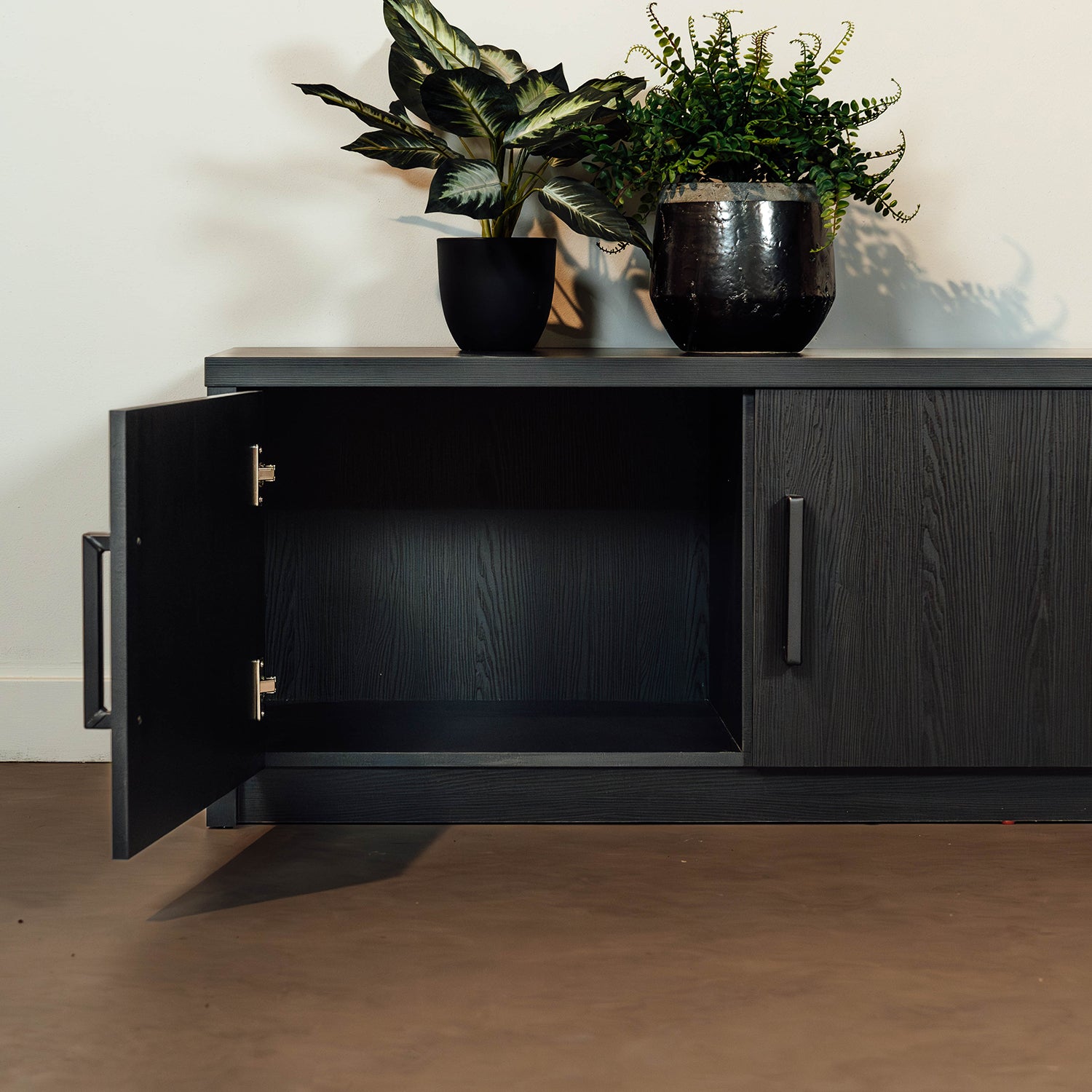 Dit meubelstuk is voorzien van twee deuren, één lade met softclose-functie, en een open vak, wat zorgt voor zowel functionaliteit als esthetiek. Het Melamine materiaal combineert de warme uitstraling van hout met de praktische voordelen van kunststof, zoals duurzaamheid en onderhoudsgemak. Het is krasbestendig en onderhoudsvrij, afnemen met een vochtige doek is al voldoende.