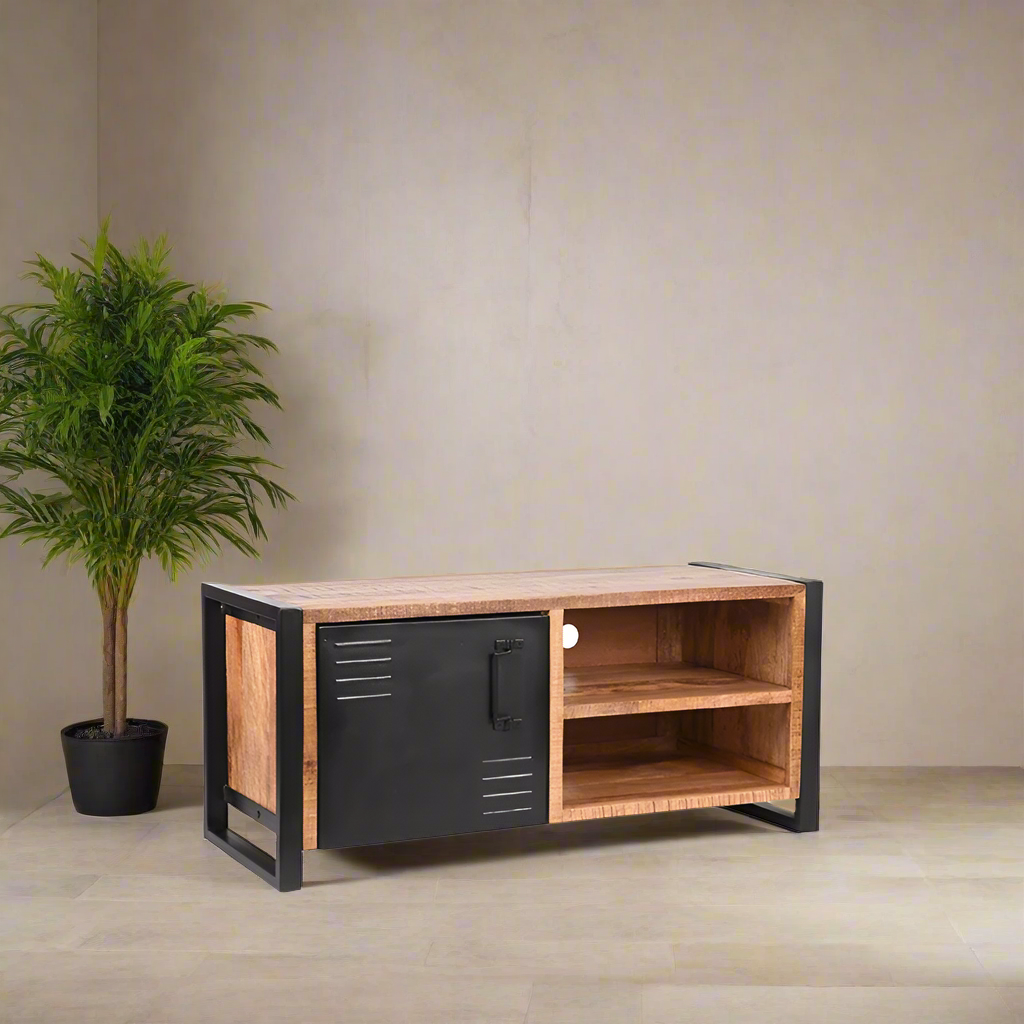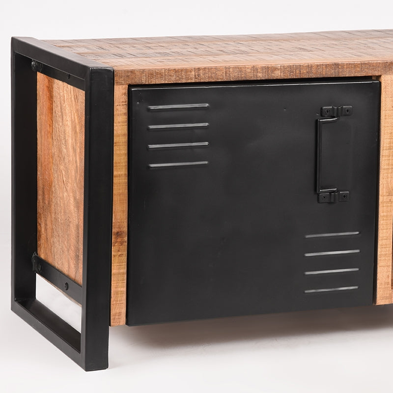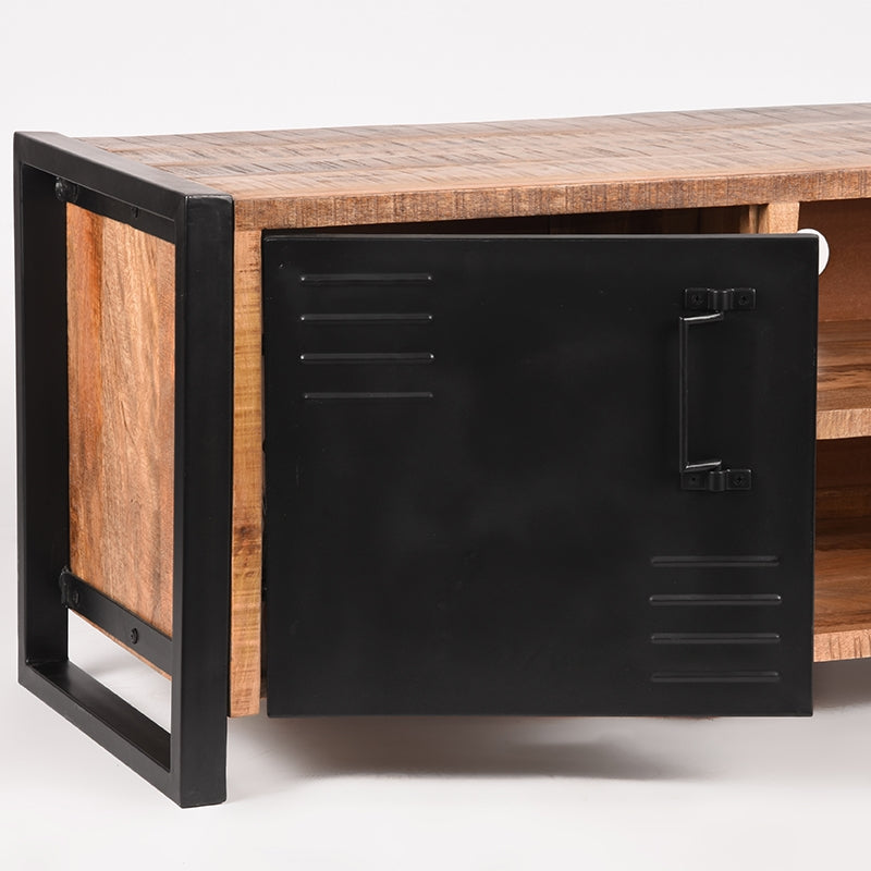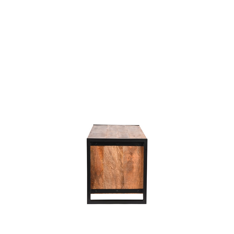 Het Tv-meubel Brussels in naturel mangohout combineert stijl en functionaliteit en is verkrijgbaar in twee formaten, zodat je altijd een passende keuze hebt. Het hoogwaardige mangohout en de metalen accenten geven dit meubel een moderne, industriële uitstraling die moeiteloos past in verschillende woonstijlen. Kies de maat die het beste bij jouw ruimte past.