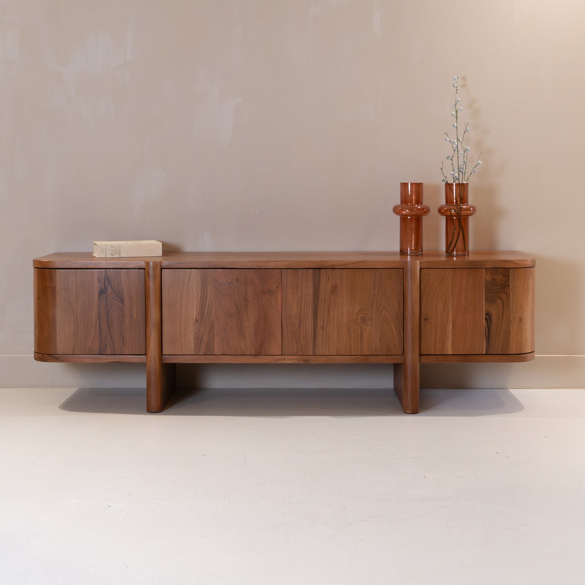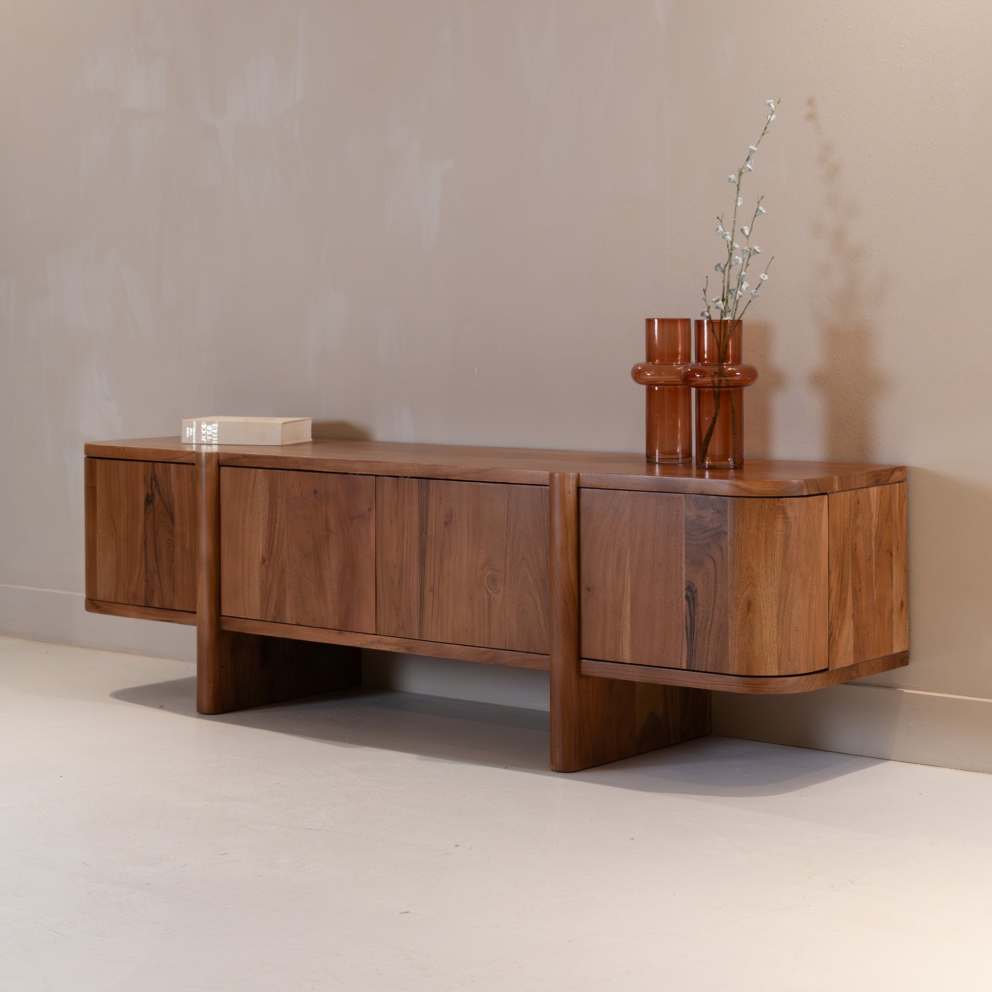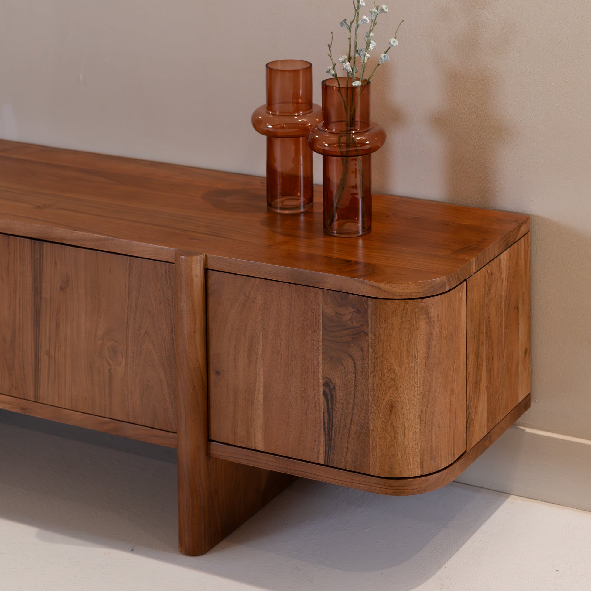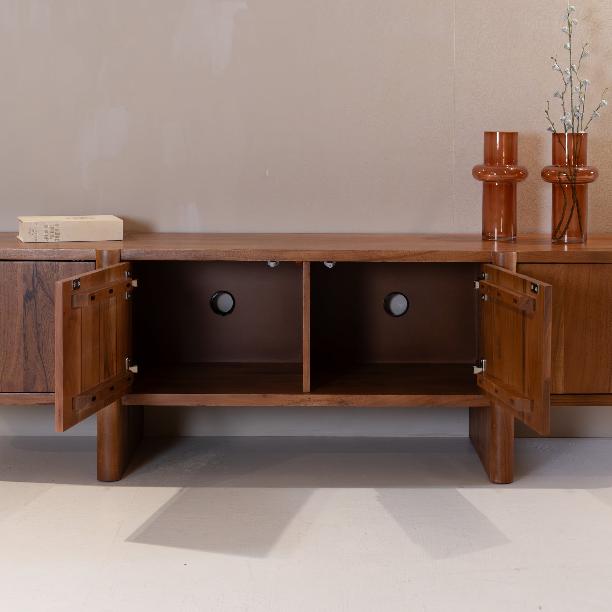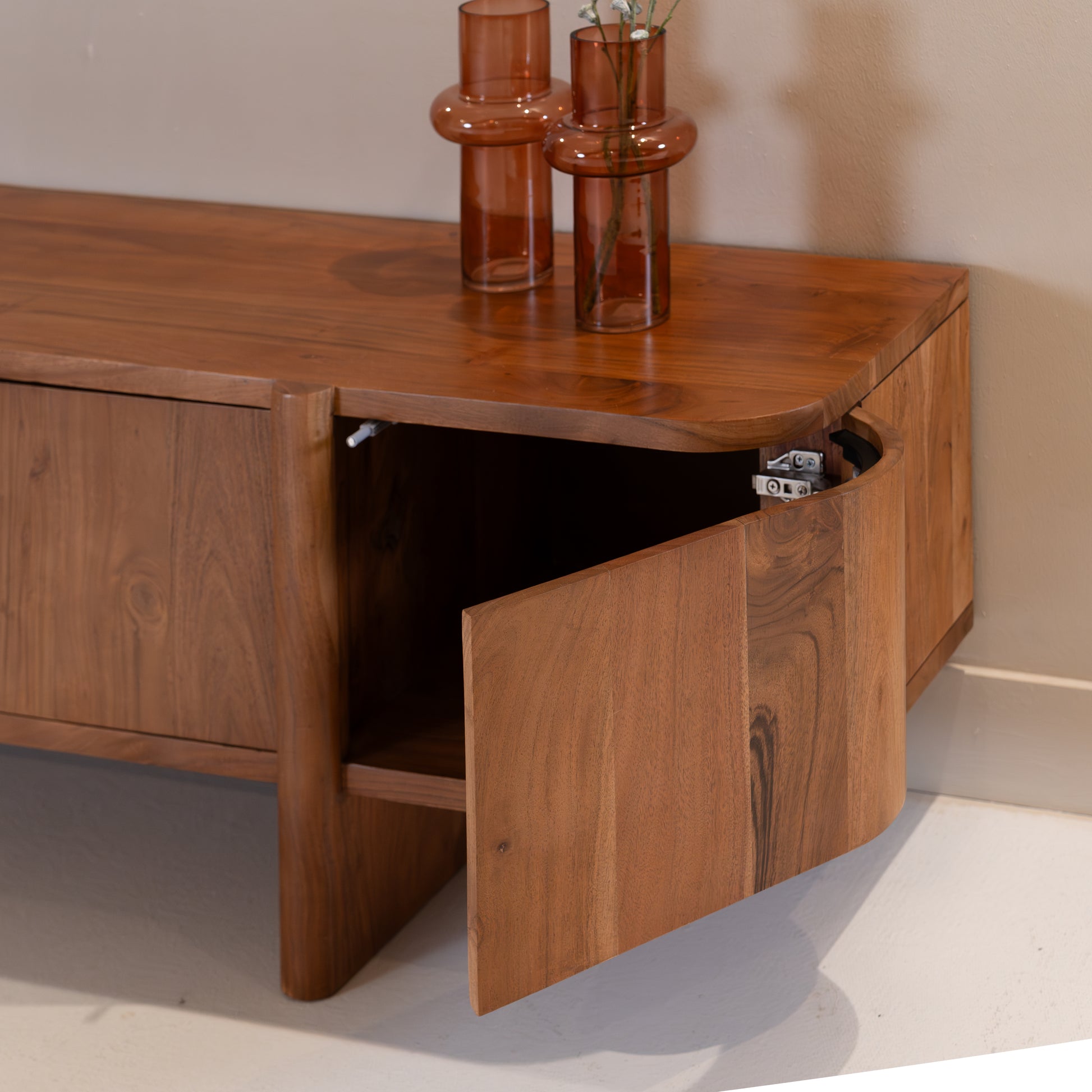 Dit tv-meubel is niet alleen functioneel maar ook een prachtige toevoeging aan je interieur. Het acaciahout zorgt voor een unieke uitstraling die elke woonkamer een warme, gezellige sfeer geeft, terwijl het meubel praktisch blijft door de ruime opbergmogelijkheden.