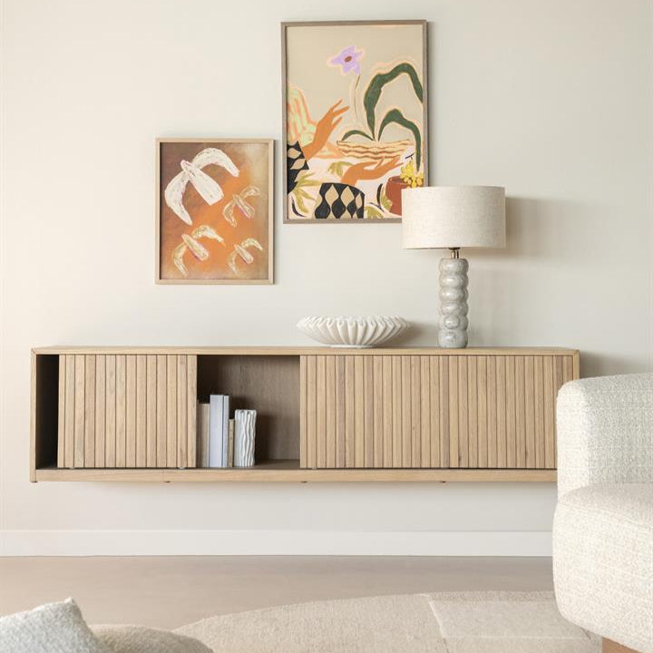 Dit meubelstuk is ideaal voor liefhebbers van een minimalistische en natuurlijke inrichting. De warme naturel eiken kleur brengt rust en harmonie in je woonkamer. Voor meer inspiratie en bijpassende meubels kun je een kijkje nemen op onze TV-meubels collectiepagina