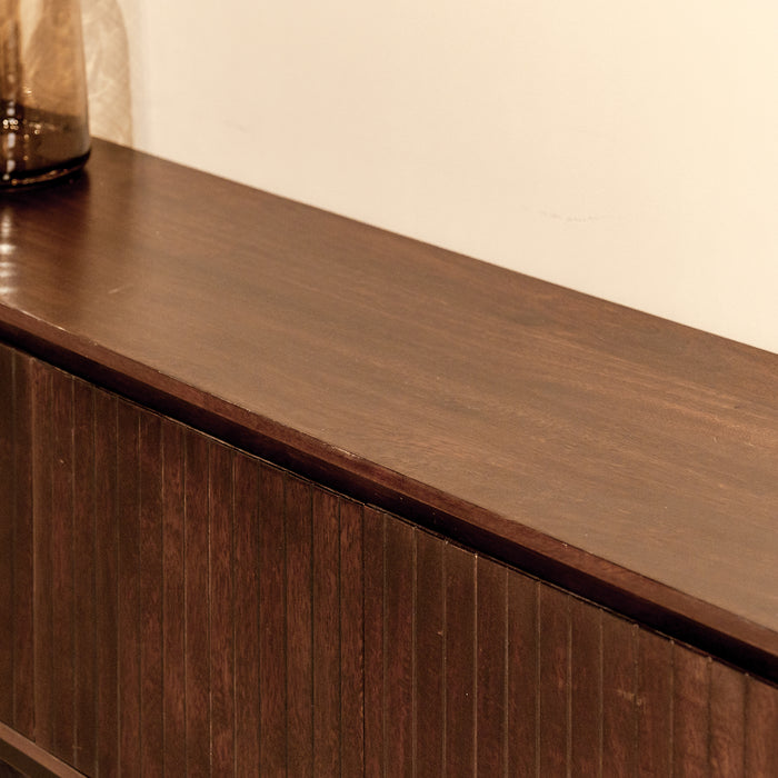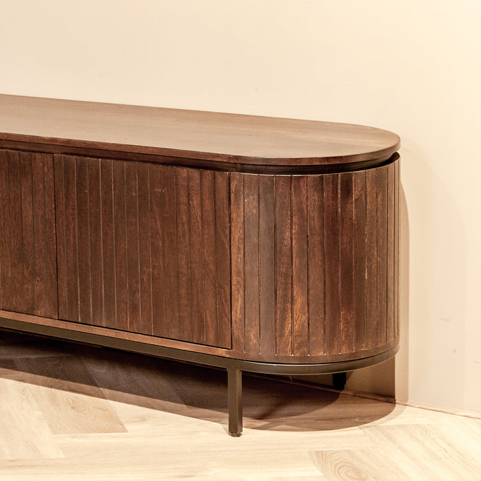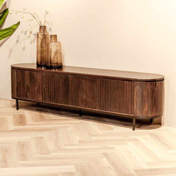 Het TV-meubel Noor is een prachtig meubelstuk met afgeronde kanten en een uniek ontwerp. Dit tv-meubel, onderdeel van onze Noor meubelserie, is gemaakt van hoogwaardig mangohout en heeft een natuurlijke uitstraling. Het mangohout in de kleur walnoot geeft het meubel een warme en natuurlijke uitstraling en is ook verkrijgbaar in de kleur naturel. Het TV-meubel is verkrijgbaar in de maat 170 cm en 210 cm.