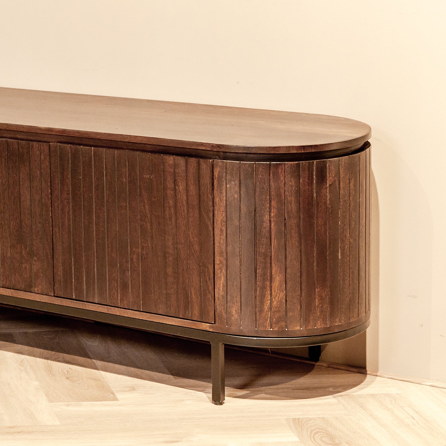 Het TV-meubel Noor is een prachtig meubelstuk met afgeronde kanten en een uniek ontwerp. Dit tv-meubel, onderdeel van onze Noor meubelserie, is gemaakt van hoogwaardig mangohout en heeft een natuurlijke uitstraling. Het mangohout in de kleur walnoot geeft het meubel een warme en natuurlijke uitstraling en is ook verkrijgbaar in de kleur naturel. Het TV-meubel is verkrijgbaar in de maat 170 cm en 210 cm.