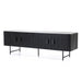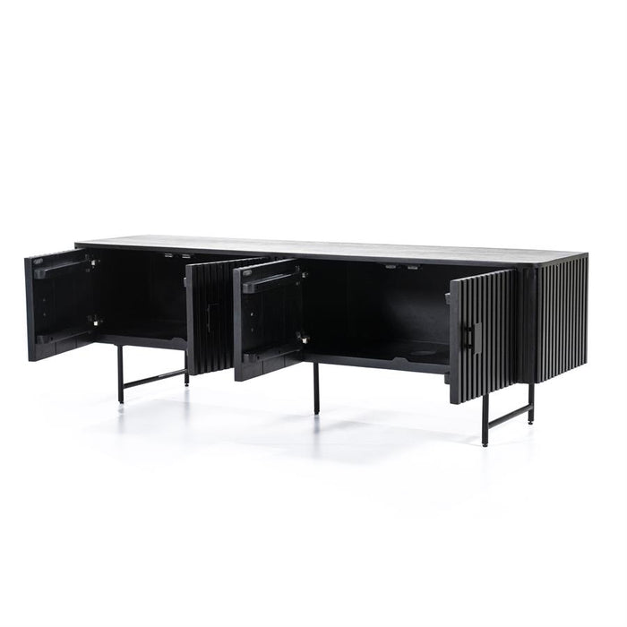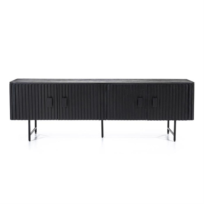 Het tv-meubel Remi van Eleonora in zwart mangohout is een stijlvolle en robuuste keuze voor een moderne woonkamer. De zwarte afwerking van het mangohout geeft dit meubel een stoere en luxueuze uitstraling, terwijl het natuurlijke houtpatroon subtiel zichtbaar blijft. Dit tv-meubel biedt niet alleen voldoende opbergruimte voor al je multimedia-accessoires, maar is ook een echte blikvanger die een industrieel tintje aan je interieur toevoegt.