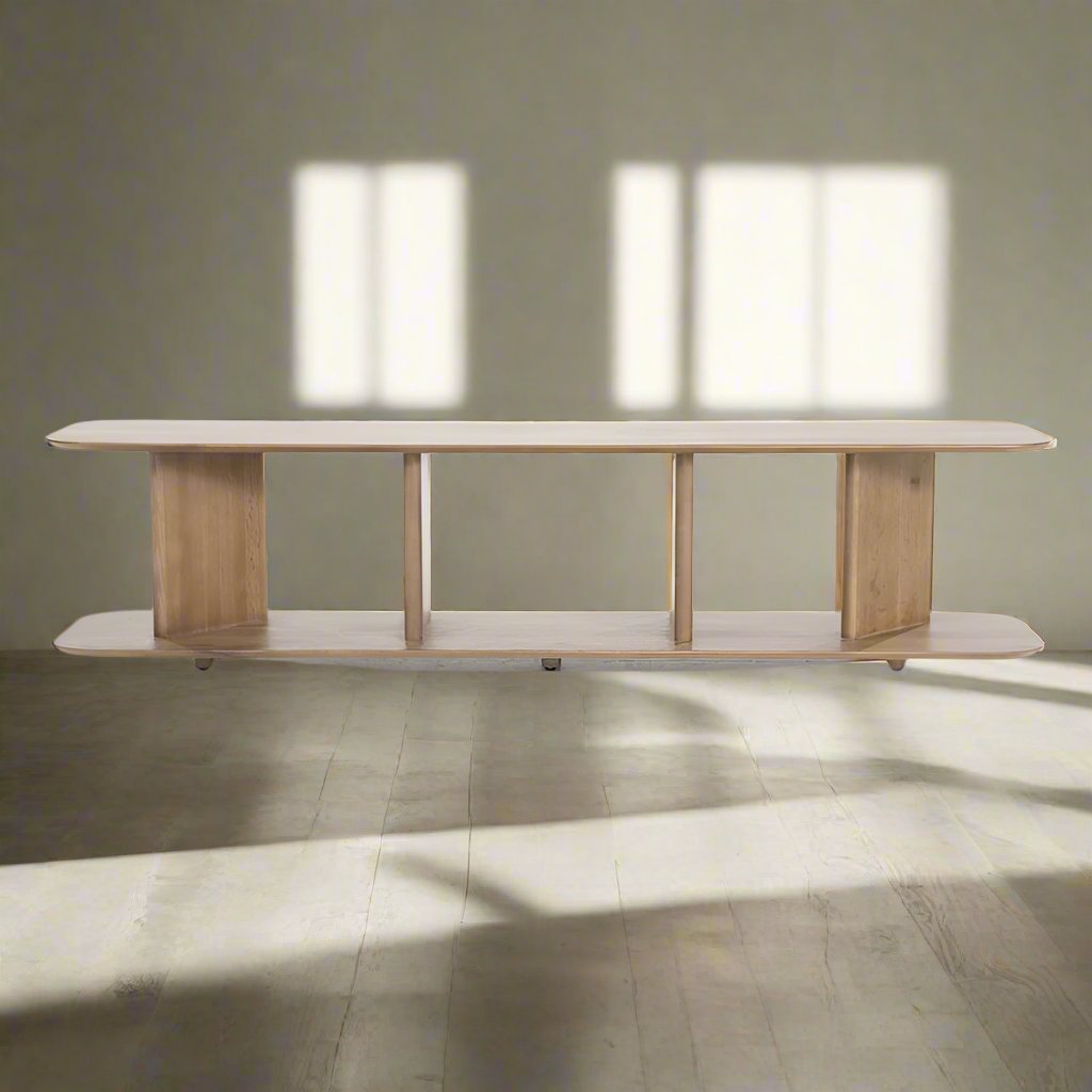 TV-meubel Ty biedt een stijlvolle en praktische oplossing voor je woonkamer met zijn eikenhouten ontwerp en robuuste afwerking. Dit meubel, beschikbaar in de kleuren bruin en naturel, is ontworpen om zowel een warme als eigentijdse uitstraling aan je interieur te geven. De drie ruime vakken van TV-meubel Ty bieden handige opbergruimte voor apparatuur, decoraties en meer. Of je nu gaat voor de natuurlijke houtkleur of het warme bruin, dit eikenhouten TV-meubel voegt een prachtige, natuurlijke charme toe aan iedere kamer.