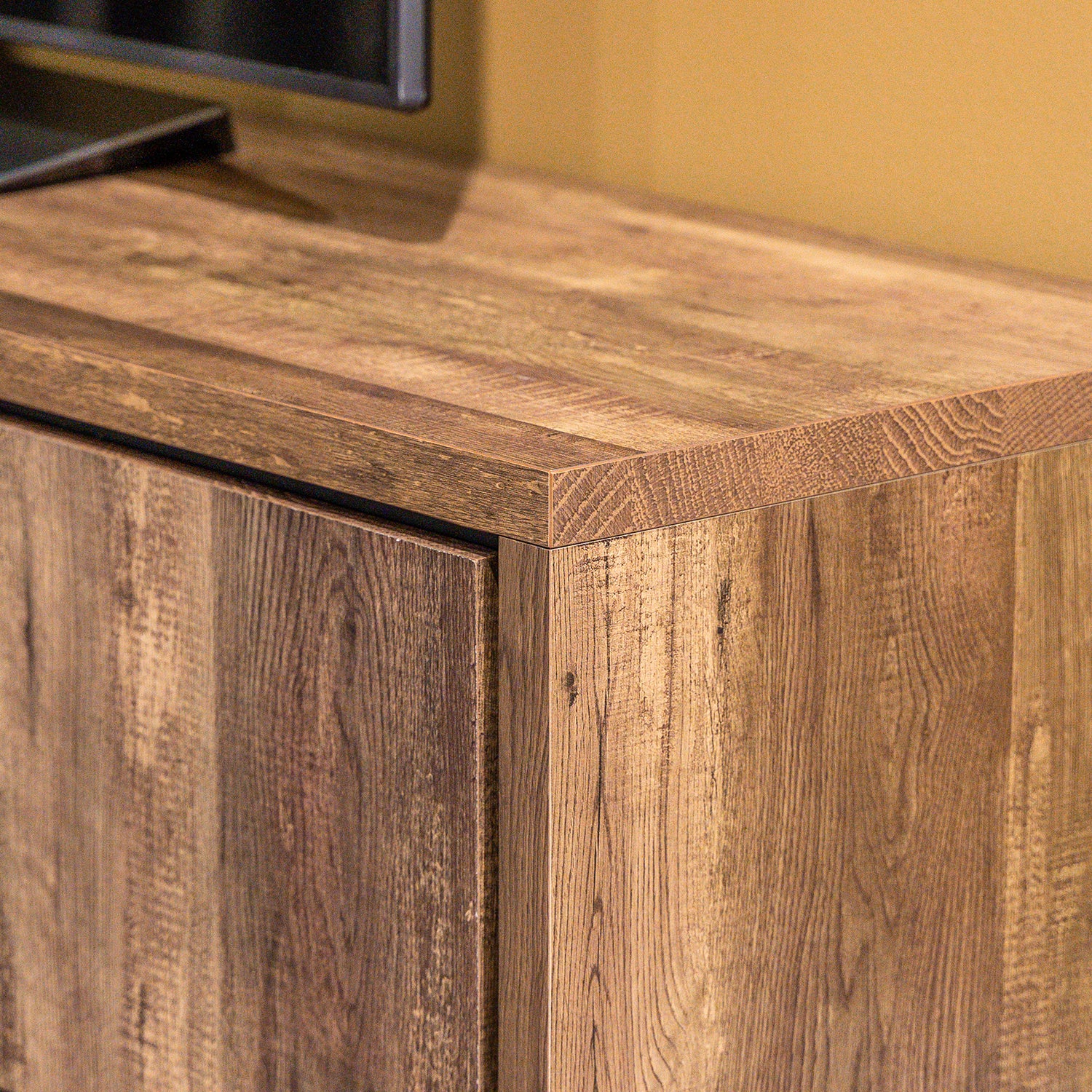 Tv-meubel Vasto staat bekend om zijn tijdloze design dat is ontstaan door de espresso kleur in combinatie met het houtdesign en de metalen afwerking. Strak, modern en vintage is een goede omschrijving van dit mooie Melamine tv-meubel.