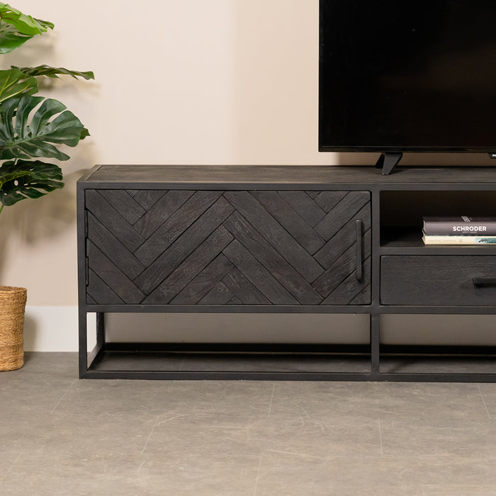 Tv meubel visgraat zijn erg populair en ook zwarte tv meubels doen er weinig voor onder. Deze combinatie van zwart en een visgraat patroon zorgen er tezamen dan ook voor dat je er bijna niet meer omheen kan.