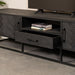 Gecombineerd met het zwarte frame past deze tv meubel in verschillende interieur stijlen. Van industrieel tot juist een modern of hotel chique interieur. Door de mooie donkere kleur steekt de tv meubel perfect af tegen een lichte muur of lichte houten vloer.