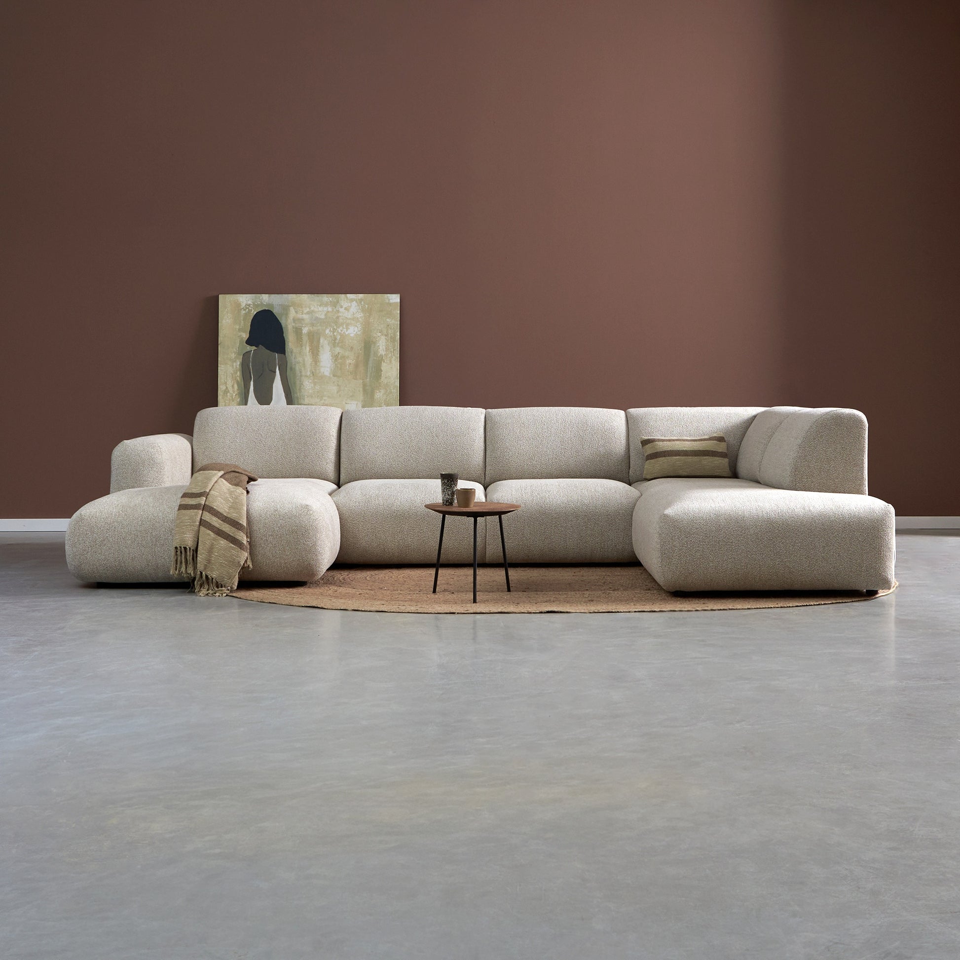 Het moderne ontwerp met afgeronde vormen, brede armleuningen en hoogwaardige afwerking maakt de Soul tot een echte blikvanger. De duurzame chenille stof Sole 05 is slijtvast, kleurvast en onderhoudsvriendelijk, waardoor de bank geschikt is voor dagelijks én intensief gebruik. De combinatie van beige en wit geeft de U-bank een frisse, rustige en luxe uitstraling die perfect past in moderne, Scandinavische of minimalistische interieurs.
