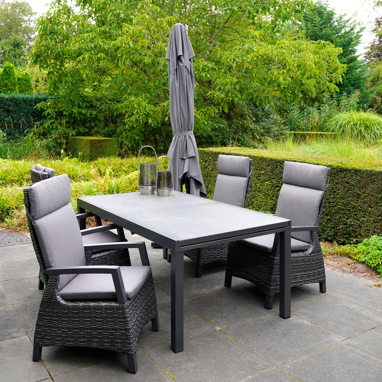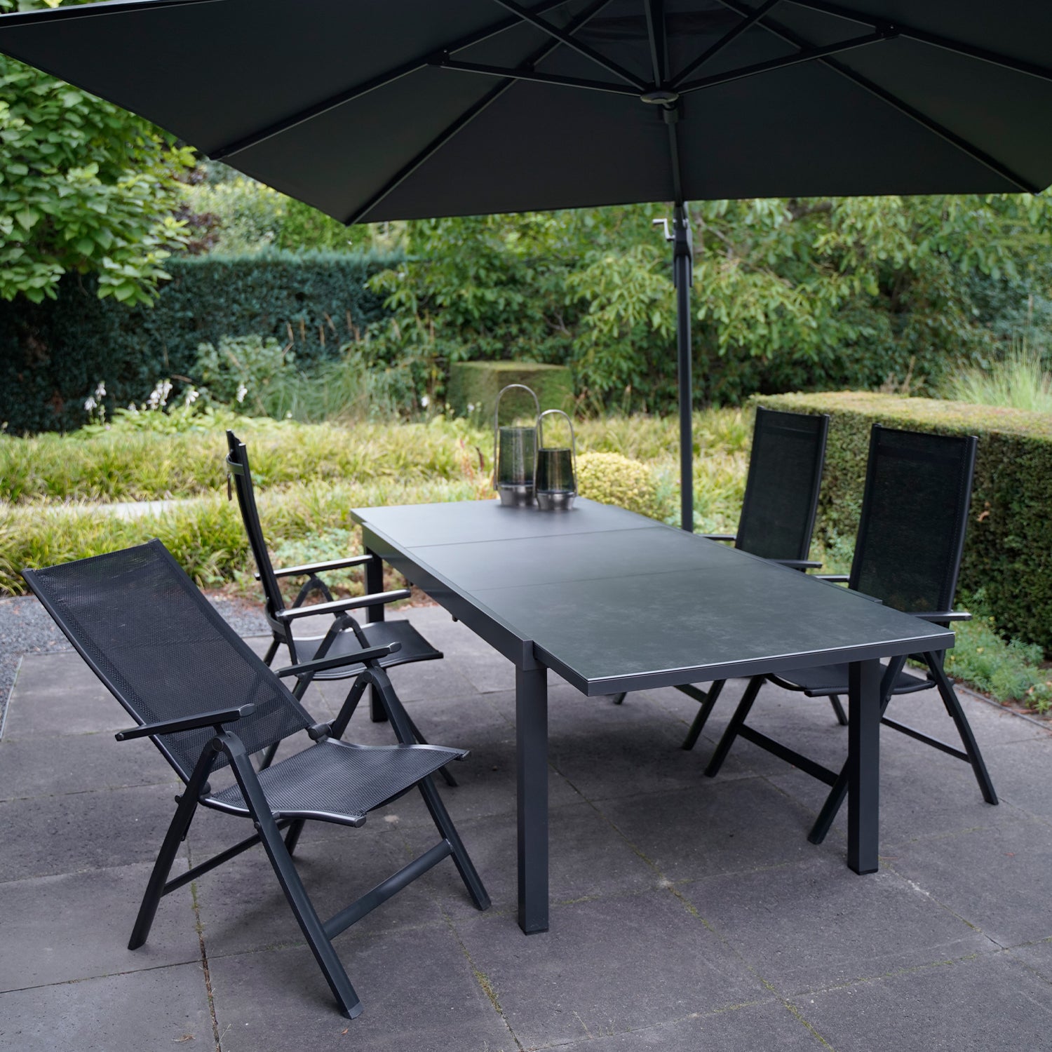 Deze uittrekbare tafel is ontworpen om te imponeren met zijn strakke lijnen en eigentijdse uitstraling. Het Keramiek materiaal zorgt voor een lichtgewicht, maar robuuste constructie met aluminium frame die moeiteloos bestand is tegen de elementen. Ideaal voor iedereen die op zoek is naar een moderne en onderhoudsvriendelijke oplossing voor hun buitenruimte.