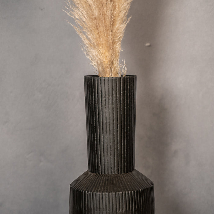 Deze vaas is een robuuste toevoeging aan je ruimte en onderscheidt zich met een industriële look. Prachtig te combineren met droogbloemen of andere fleurigheid. De vaas is gemaakt van metaal en staat daardoor stevig op de grond.