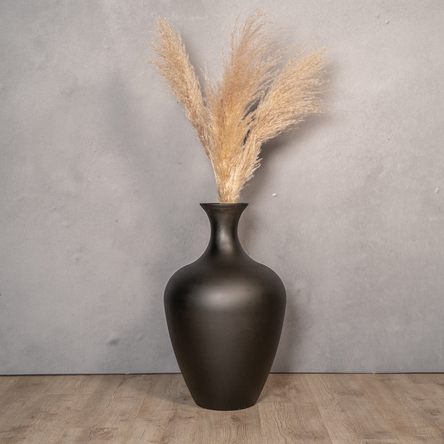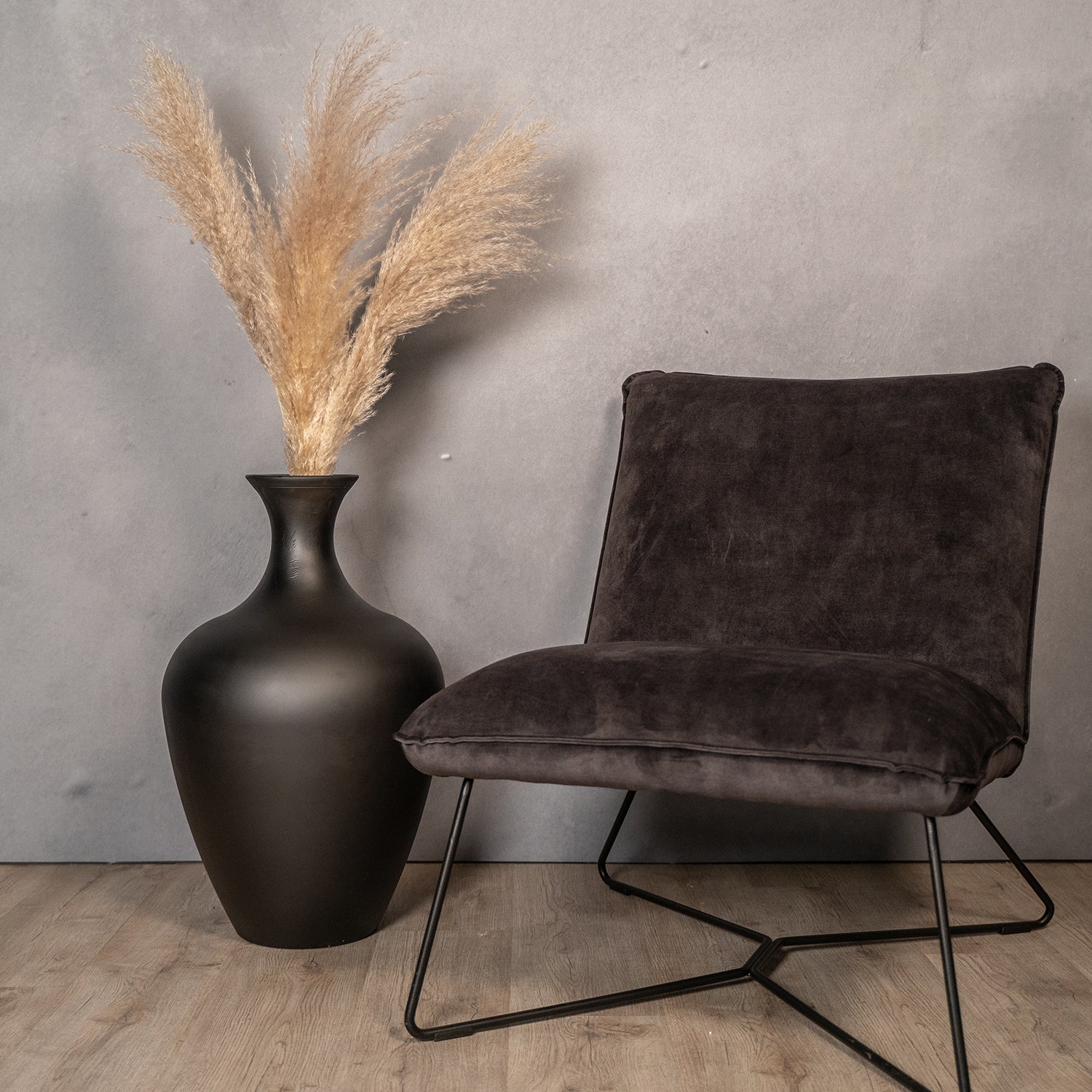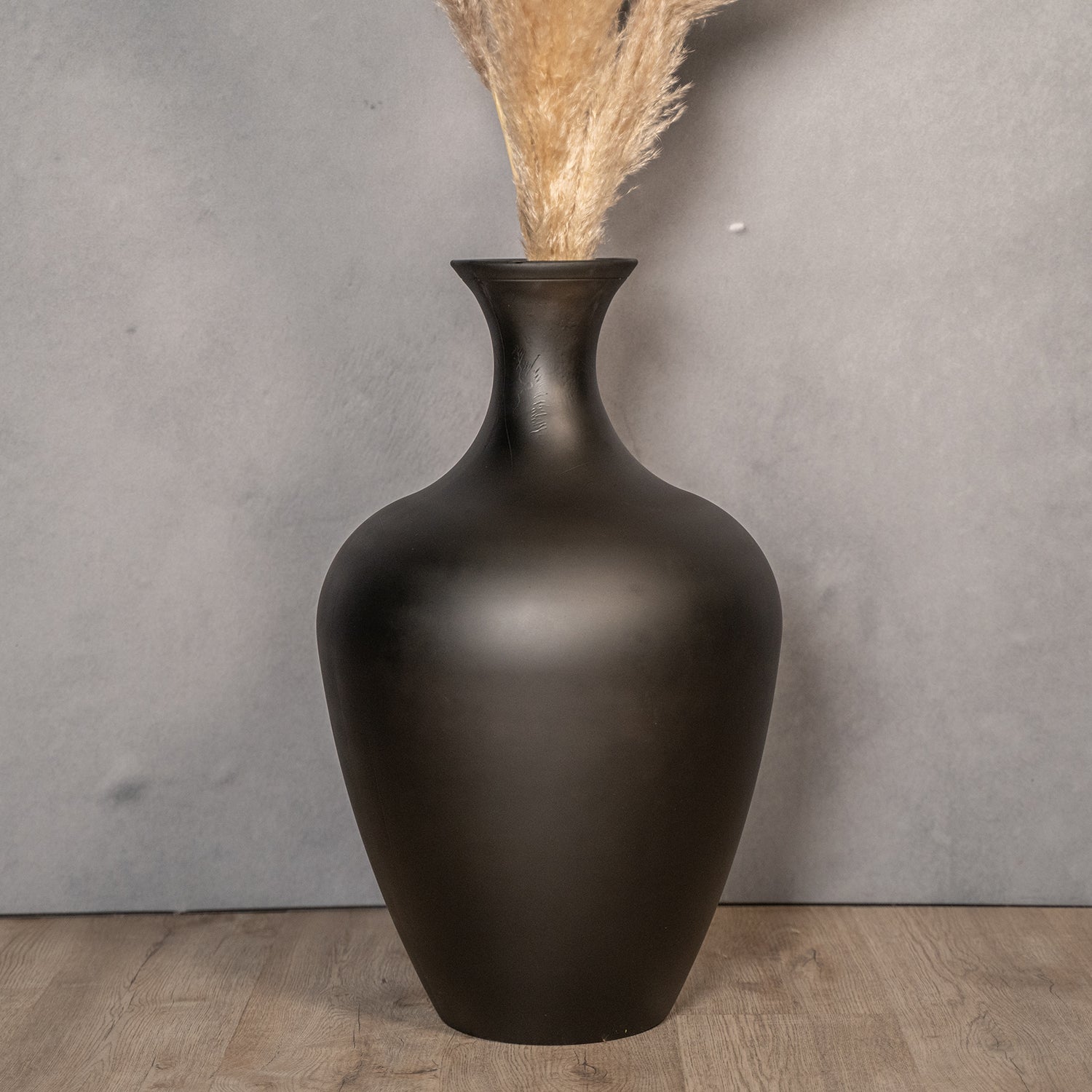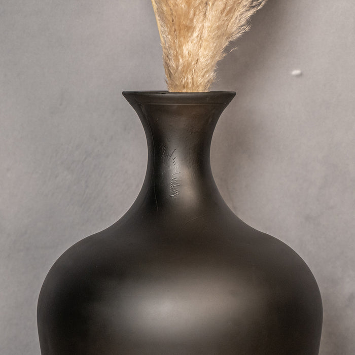 Deze vaas met klassieke uitstraling geeft je ruimte een rustige stijlvolle touch. De mat zwarte afwerking en het orientaalse design zijn mooi te combineren met droogbloemen of andere fleurigheid. De vaas is gemaakt van glas.