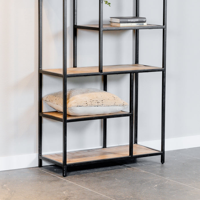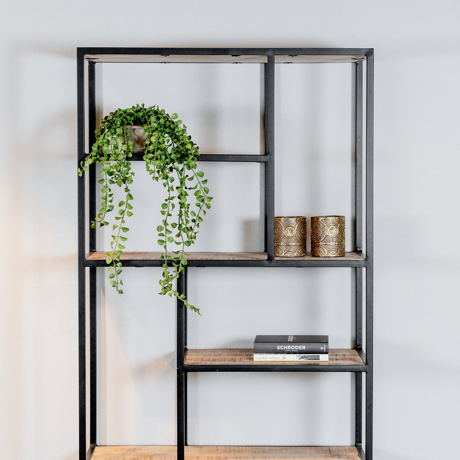 Het frame van deze vakkenkast is gemaakt van stevig metaal en is afgewerkt in een zwarte kleur, met een poedercoating voor extra bescherming tegen krassen en slijtage.