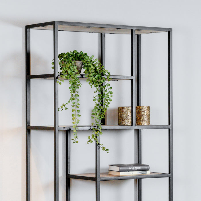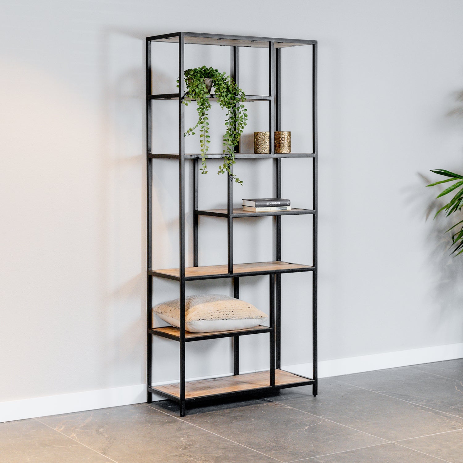 Met afmetingen van 84 x 35 x 188 centimeter biedt deze vakkenkast veel opbergruimte voor boeken, decoratieve items, souvenirs en meer.