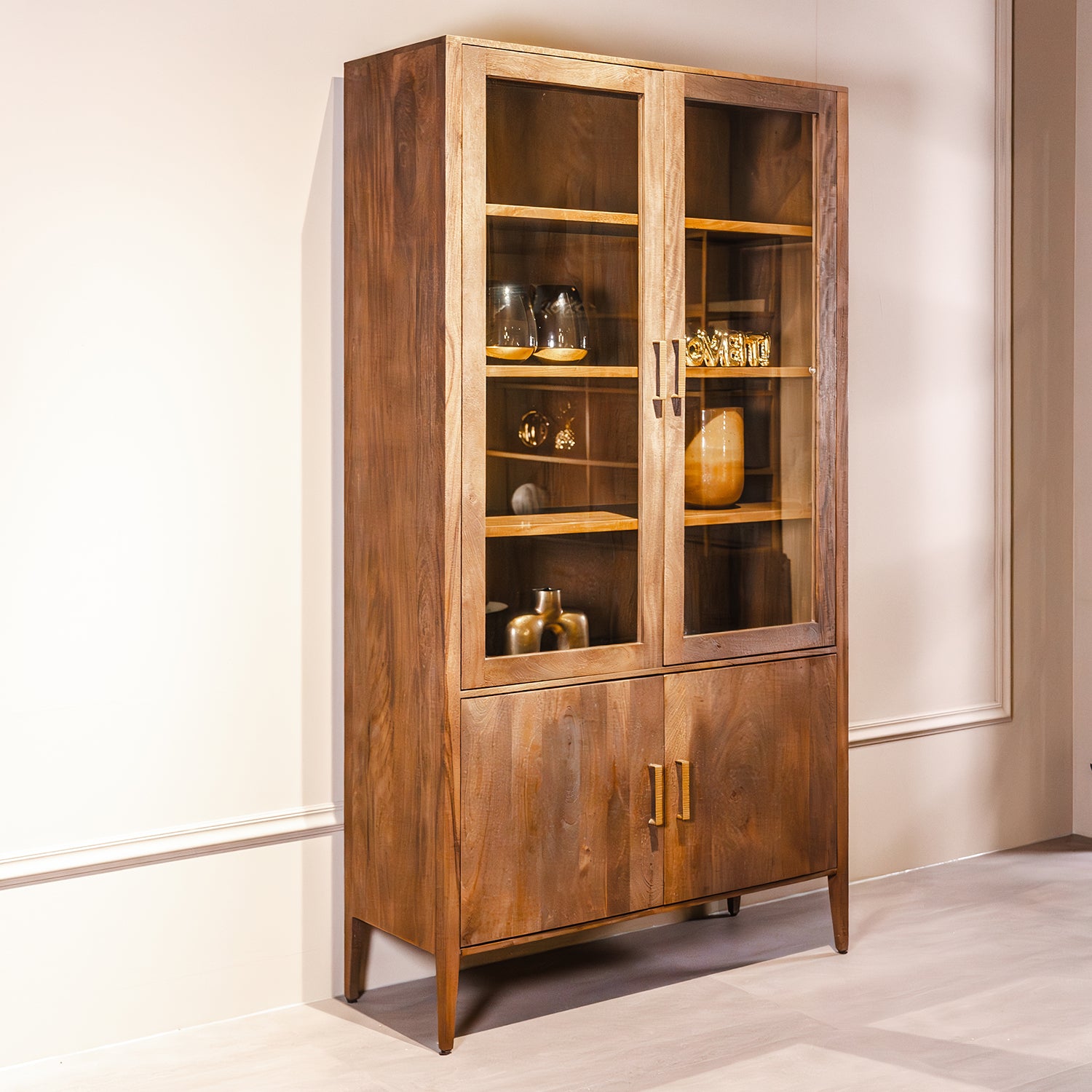 Op zoek naar een opvallende toevoeging aan je interieur? Ontdek onze Vitrinekast Belvedere, vervaardigd van warm bruin mangohout met schuin afgewerkte poten. Deze vitrinekast straalt klasse uit en voegt een uniek element toe aan je woonruimte.